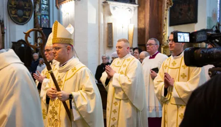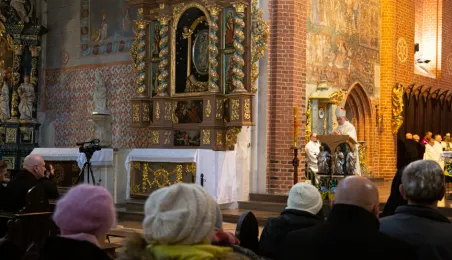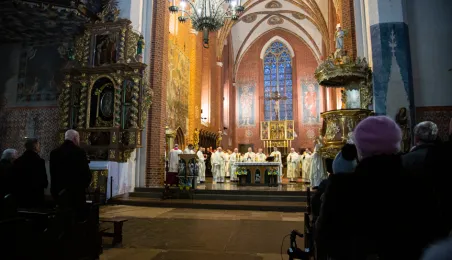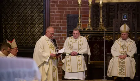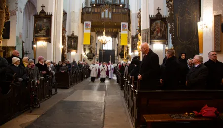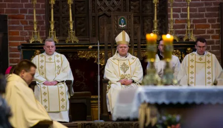 16 lutego 2023 roku w Katedrze śś. Janów w Toruniu odbyła się uroczysta msza święta w intencji ks. Sławomira Odera, który został mianowany biskupem diecezji gliwickiej. W nabożeństwie, któremu przewnodniczył biskup toruński Wiesław Śmigiel, wziął udział Prezydent Michał Zaleski oraz jego zastępcy - Zbigniew Fiderewicz i Adrian Mól. / fot. Paula Gałązka