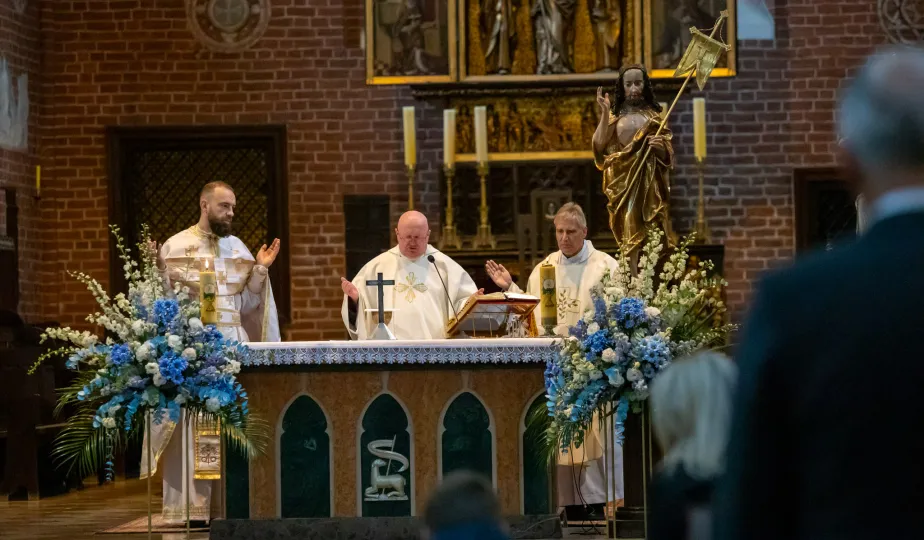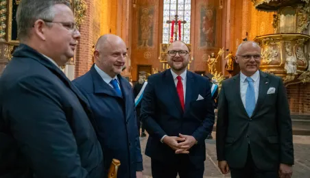 7 maja 2024 r. w Katedrze śś. Janów w Toruniu odbyła się Msza Święta w intencji miasta i mieszkańców. Wzięli w nim udzial ustępujący prezydent Torunia Michał Zaleski, prezydent elekt Paweł Gulewski, marszałek województwa kujawsko-pomorskiego Piotr Całbecki, parlamentarzyści, radni Rady Miasta Torunia, byli samorządowcy, a także przedstawiciele jednostek miejskich. fot. Agnieszka Bielecka
