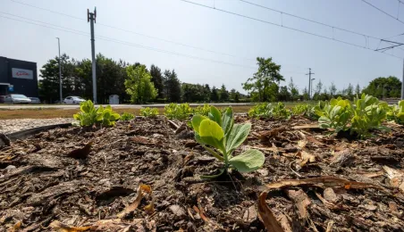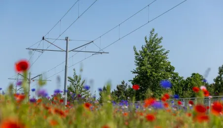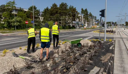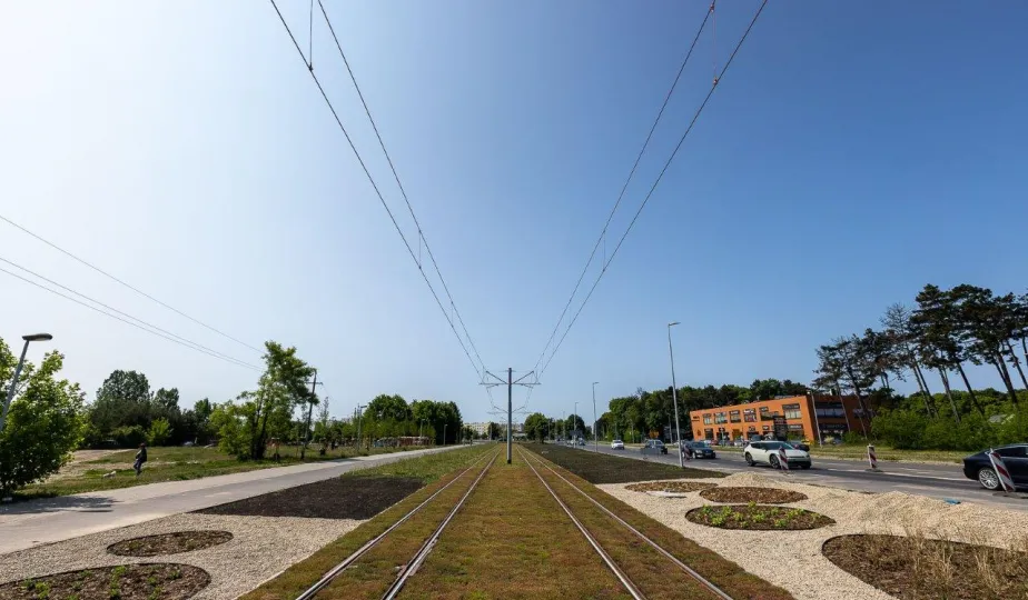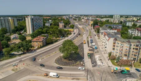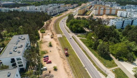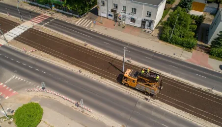 Gotowe jest już torowisko i sieć trakcyjna na znacznej części nowej linii tramwajowej od przejazdu kolejowo-tramwajowego, wzdłuż ul. Polnej, Ugorów i Watzenrodego do ronda Strobanda. Na pozostałych odcinkach prace jeszcze trwają, ale zbliżają się do ostatniej prostej. Końcówka maja 2023 r. to frezowanie na ul. Legionów i kwitnące łąki kwietne na ul. Watzentodego. Fot. W. Bujak/TV Toruń