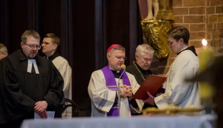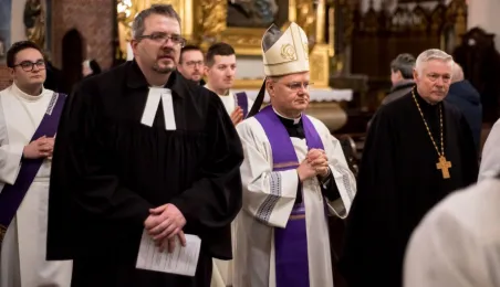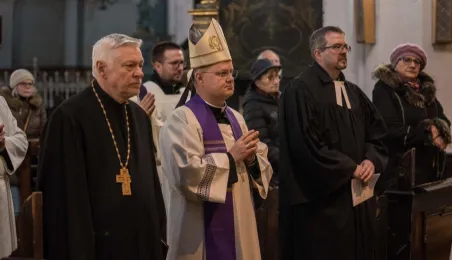 W dniu 30 marca 2022 r. w katedrze pw. śś. Janów odbyło się nabożeństwo ekumeniczne pod przewodnictwem biskupa diecezji toruńskiej, ks. Wiesława Śmigla, proboszcza toruńskiej parafii prawosławnej ks. mitrata Mikołaja Hajduczeni oraz proboszcza toruńskiej parafii ewangelicko-augsburskiej Michała Walukiewicza. Duchowni i wierni moblili się w językach polskim i ukraińskim o pokój w Ukrainie. Fot. Lech Kamiński