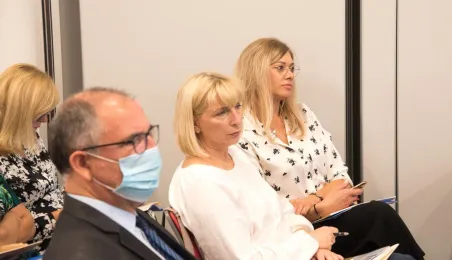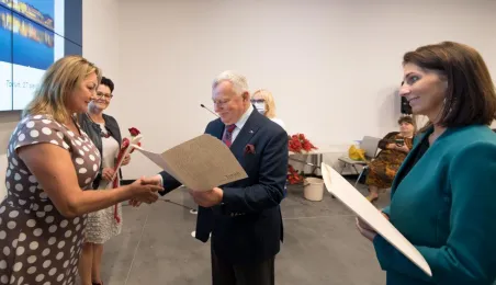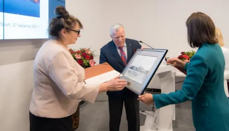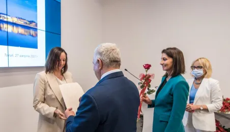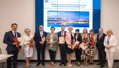 Narada dyrektorów przedszkoli, szkół i placówek oświatowych prowadzonych przez Gminę Miasta Toruń odbyła się 27 sierpnia 2021 r. w Centrum Nowoczesności Młyn Wiedzy w Toruniu. Była to okazja do podziękowań odchodzącym dyrektorom oraz wręczenia nominacji nowo mianowanym i tym, których kadencja została przedłużona. Fot. Lech Kamiński