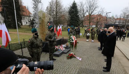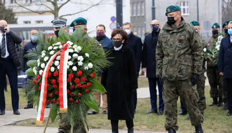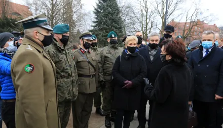 Toruń włączył się 1 marca 2021 r. w obchody Narodowego Dnia Pamięci "Żołnierzy Wyklętych". Gościem miejskich uroczystości była Marszałek Sejmu RP Elżbieta Witek, która na zaproszenie dowódcy jednostki st. chor. ZS Adama Ślusarskiego uczestniczyła w uroczystości złożenia przyrzeczenia przed 12 nowych adeptów Jednostki Strzeleckiej 1909 im. gen. bryg. Elżbiety Zawackiej w Toruniu. Fot. Sławomir Kowalski