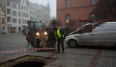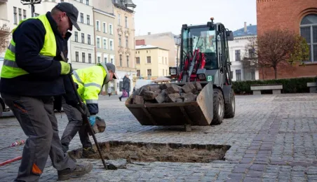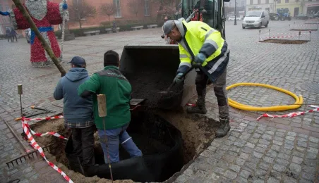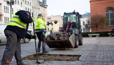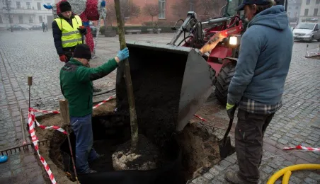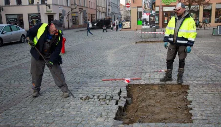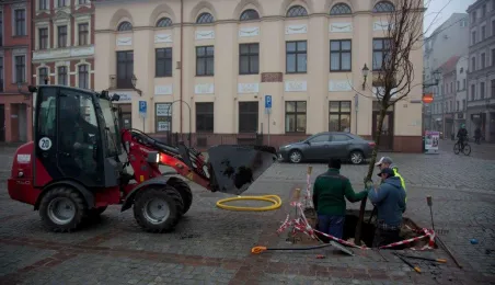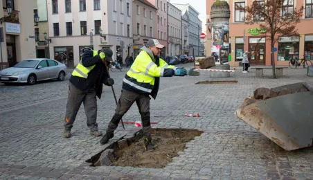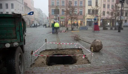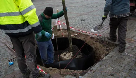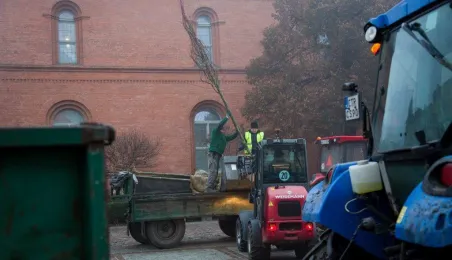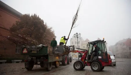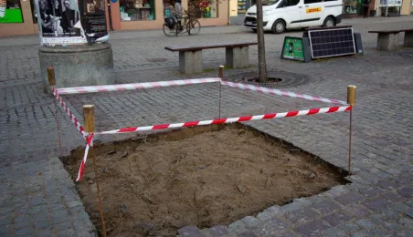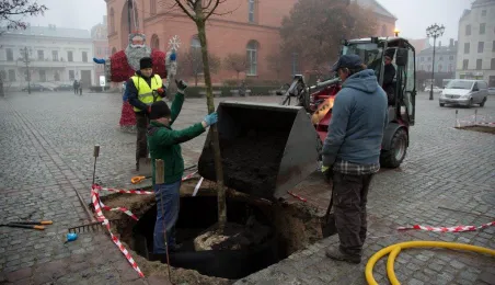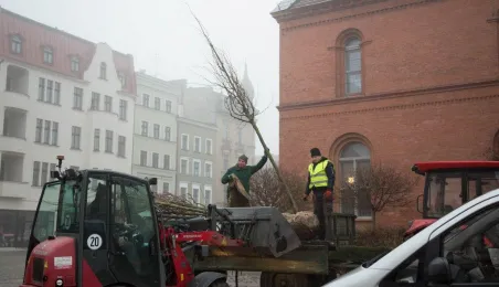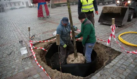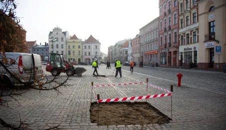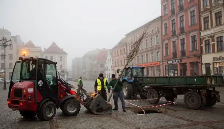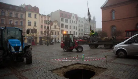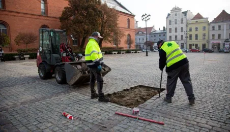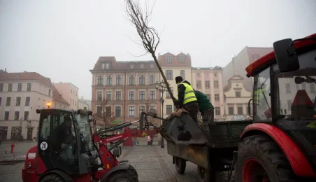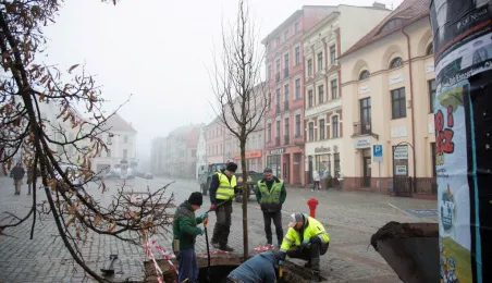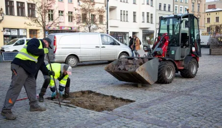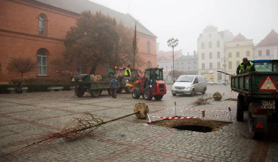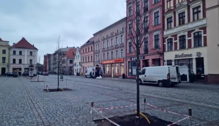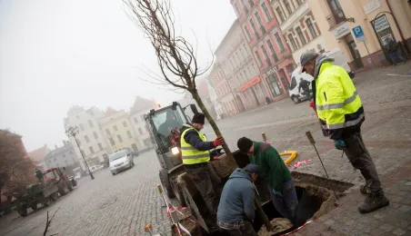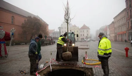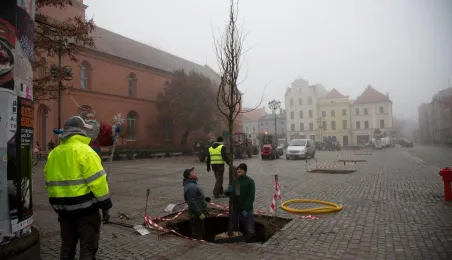 Na Rynku Nowomiejskim pojawiły się nowe drzewa. To sześć lip, które nasadzono w ramach Budżetu Obywatelskiego. / fot. Paula Gałązka
