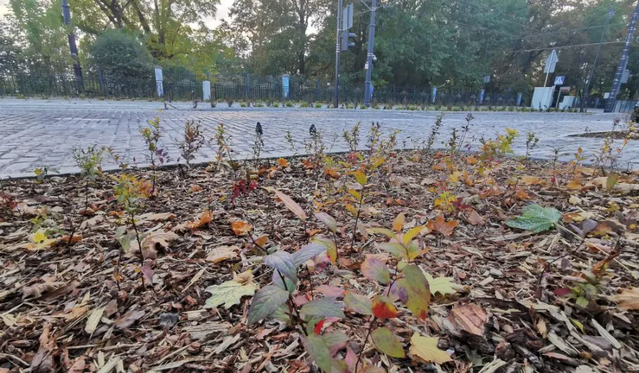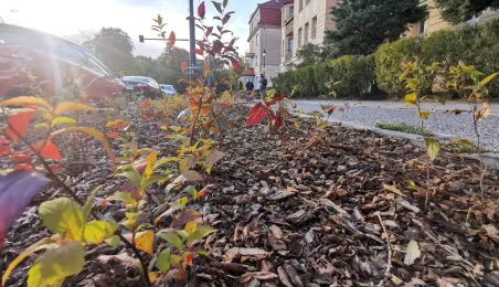 Z początkiem października zakończono realizację zadania z budżetu obywatelskiego pn. „Rekultywacja zieleni wzdłuż Bydgoskiej oraz Chopina". Dzieki temu w pasie drogowym pojawiły się nowe krzewy z gat. Tawuła japońska odm. „Goldmound". / fot. Paula Gałązka