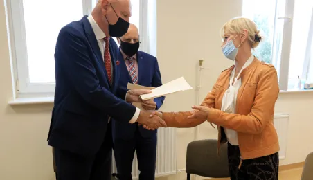Od 1 września 2021 r. funkcję dyrektora Miejskiego Ośrodka Pomocy Rodzinie piastować będzie Rafał Walter, zaś dyrektora Wydziału Ochrony Ludności płk Dariusz Adamczyk. Nominacje na stanowiska wręczył im pierwszego dnia pracy prezydent Michał Zaleski. Fot. Sławomir Kowalski