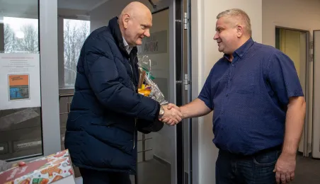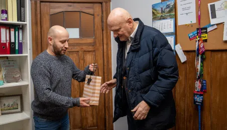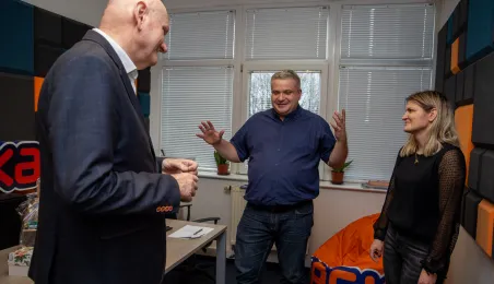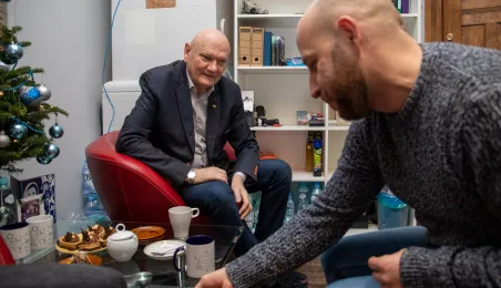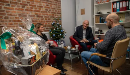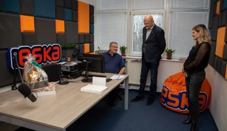 2 stycznia 2024 roku prezydent Michał Zaleski wraz z rzecznikiem prasowym Malwiną Jeżewską odwiedzili lokalne redakcje - Dzień Dobry Toruń i Radio Eska. Fot. Agnieszka Bielecka