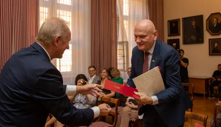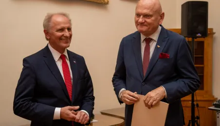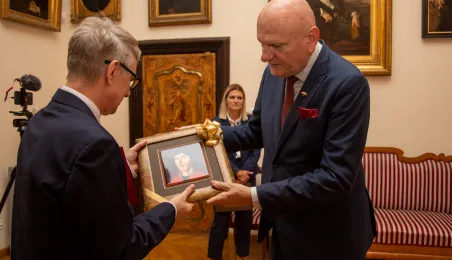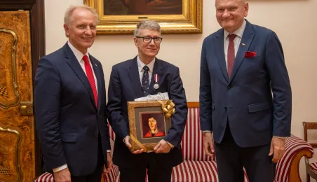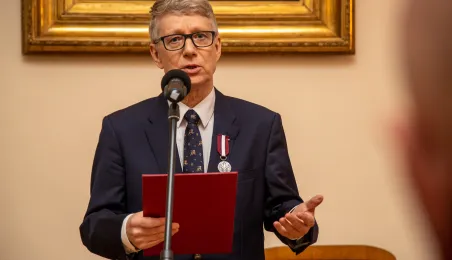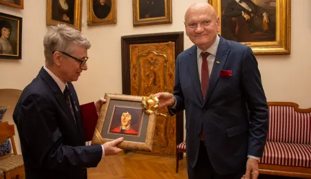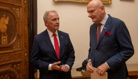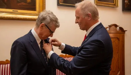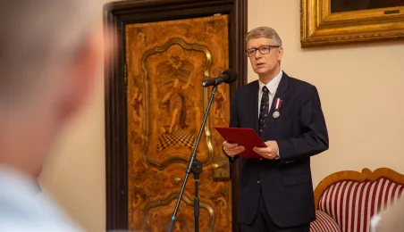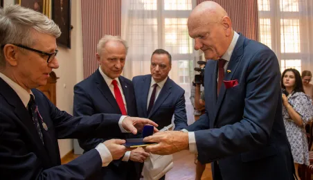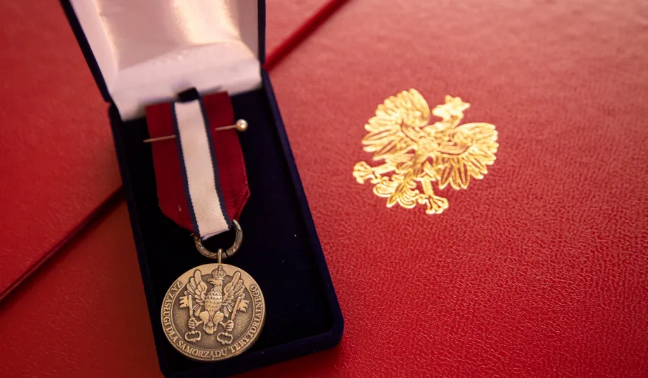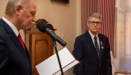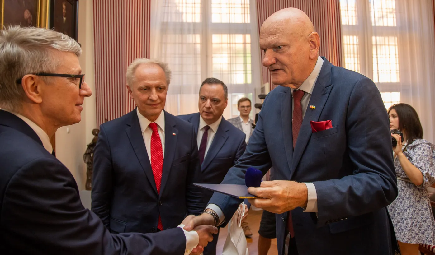 Minister ds. Samorządu Terytorialnego Włodzimierz Tomaszewski odznaczył Marka Żydowicza Odznaki Honorowej za Zasługi dla Samorządu Terytorialnego. Odznaka ta została nadana, z inicjatywy Ministra ds. Samorządu Terytorialnego Włodzimierza Tomaszewskiego z 3 listopada 2022 r., przez Ministra Spraw Wewnętrznych i Administracji Mariusza Kamińskiego. Wręczenie odznaczenia odbyło się 19 września 2023 r. w Ratuszu Staromiejskim w Sali Rady. Fot. Agnieszka Bielecka