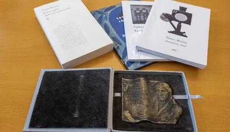 Tomasz Różycki i Marcel Beyer zostali laureatami Nagrody Miast Partnerskich Torunia i Getyngi im. S.B. Lindego w 2023 – poinformowali członkowie Kapituły: prof. dr hab. Leszek Żyliński, dr hab. Radosław Sioma i dr hab. Violetta Wróblewska wraz z zastępcą prezydenta Zbigniewem Fiderewiczem podczas konferencji prasowej 24 kwietnia 2023 r. w Ratuszu Staromiejskim. Tego dnia przypadała także 252. rocznica urodzin patrona nagrody, dlatego zastępca prezydenta Zbigniew Fiderewicz wraz ze Zbigniewem Derkowskim, dyrektorem Wydziału Kultury Urzędu Miasta złożyli kwiaty pod pomnikiem Samuela Bogumiła Lindego. Fot. Wojtek Szabelski