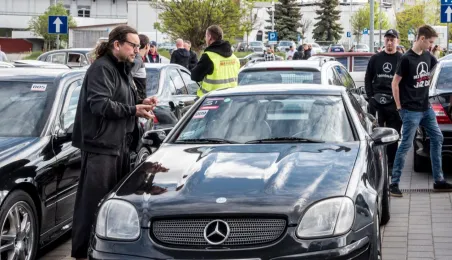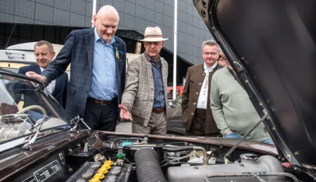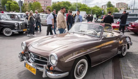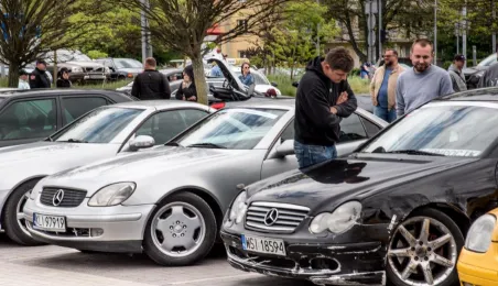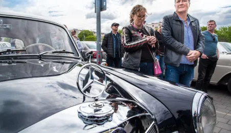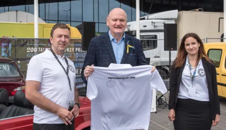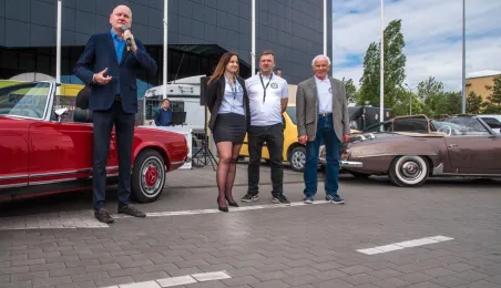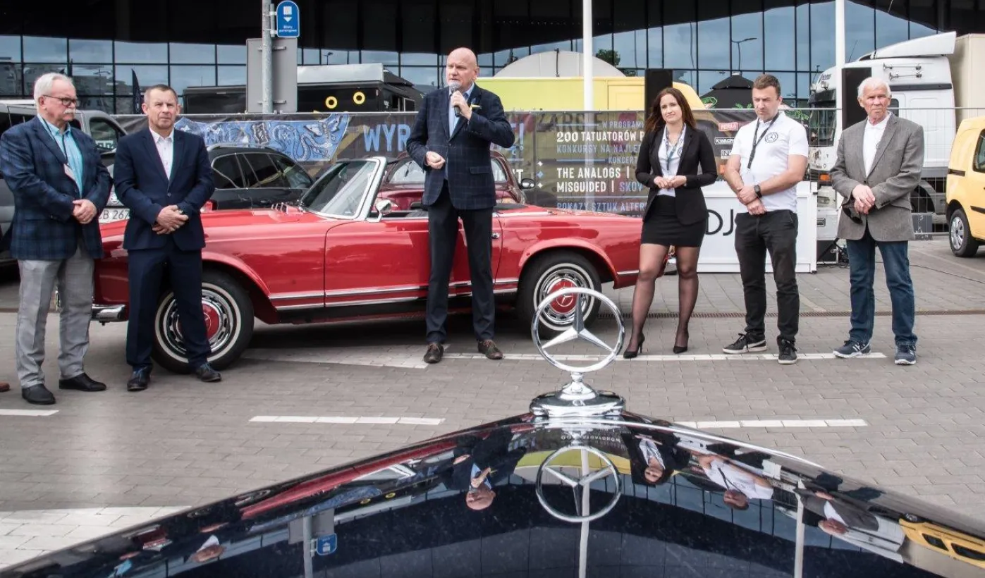 W dniach 14-15 maja 2022 r. w Toruniu odbywa się Ogólnopolski Zlot Mercedes-Benz. Uczestników przy hali Arena Toruń w dn. 14 maja 2022 r. powitał prezydent Michał Zaleski. Fot. Lech Kamiński