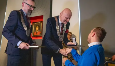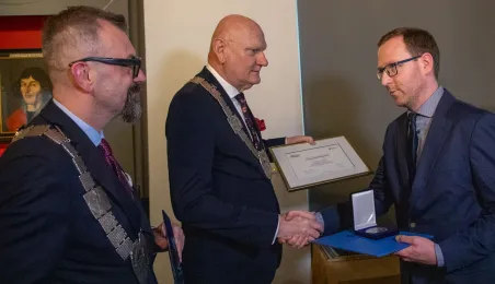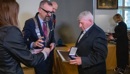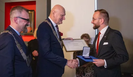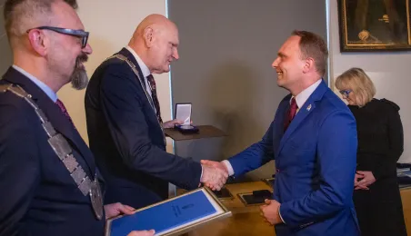 Uroczysta, 68. sesja w Ratuszu Staromiejskim zakończyła 4 kwietnia 2024 r. VIII kadencję Rady Miasta Torunia. Była to okazja do podsumowań i podziękowań wszystkim osobom i instytucjom zaangażowanym w pracę na rzecz miasta. Fot. Agnieszka Bielecka