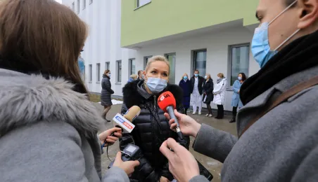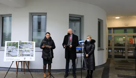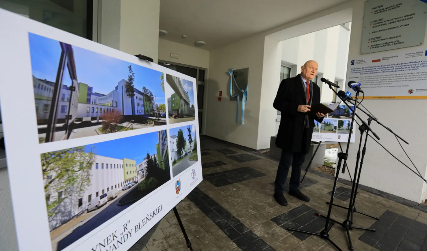 Specjalistyczny Szpital Miejski poszerzył swoją bazę o nowe skrzydło, w którym mieszczą się m.in. oddziały Neurologii i Leczenia Udarów oraz Hematologii i Transplantacji Szpiku. Patronką tej części szpitala została dr Wanda Błeńska. Uroczyste otwarcie nowego budynku Specjalistycznego Szpitala Miejskiego im. Mikołaja Kopernika połączone z odsłonięciem tablicy poświęconej jego patronce odbyło się 14 grudnia 2021 r. Fot. Sławomir Kowalski
