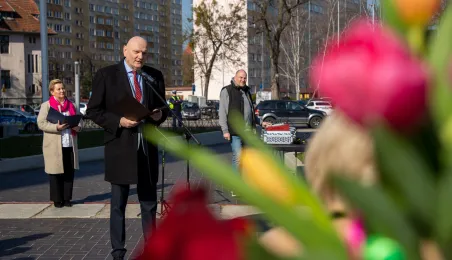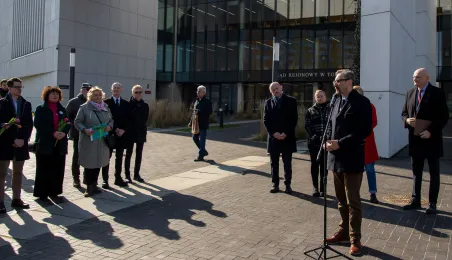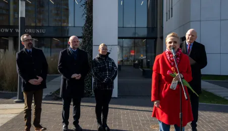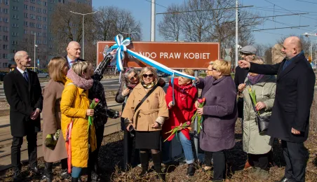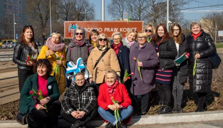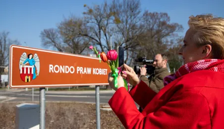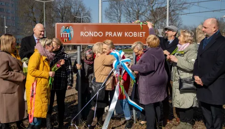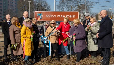 Toruń ma Rondo Praw Kobiet. Rondo położone u zbiegu ulic: Grudziądzkiej, Warneńczyka i Bażyńskich. Uroczyste odsłonięcie tabilcy z nazwą odbyło się 8 marca 2024 r. / fot. Agnieszka Bielecka