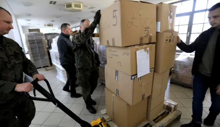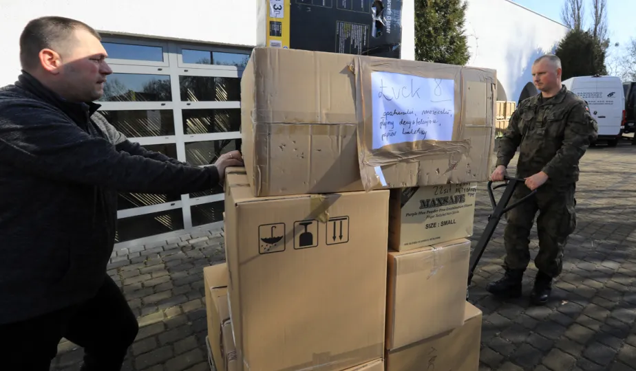 14 marca 2022 r. w Centrum Targowym Park przygotowaliśmy kolejny transport darów dla mieszkańców miasta partnerskiego Torunia - Łucka. W sortowaniu i pakowaniu pomagali żołnierze WOT-u.