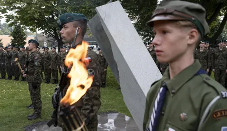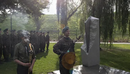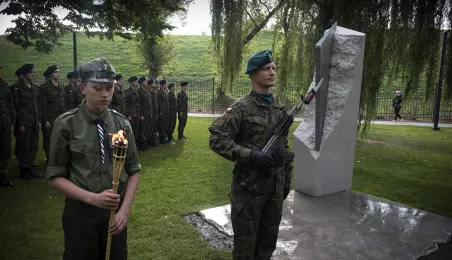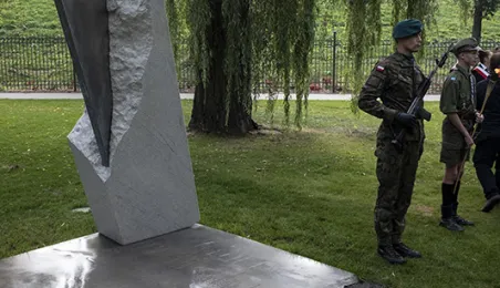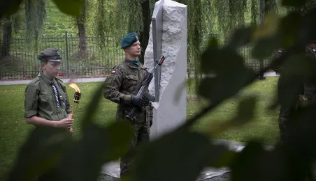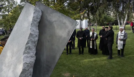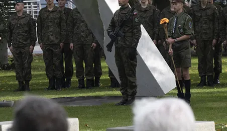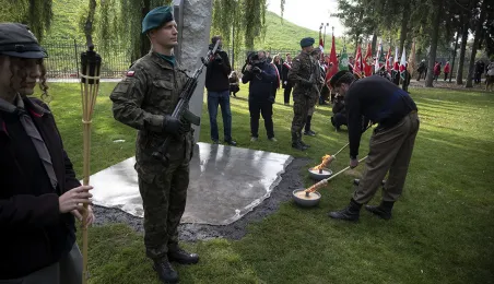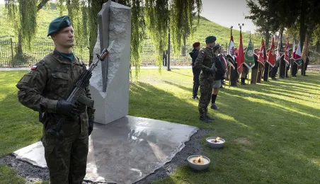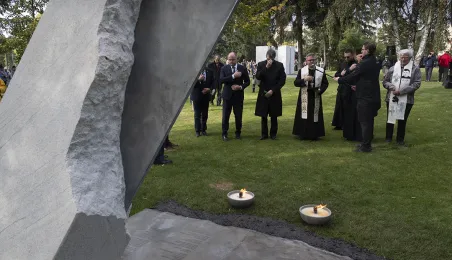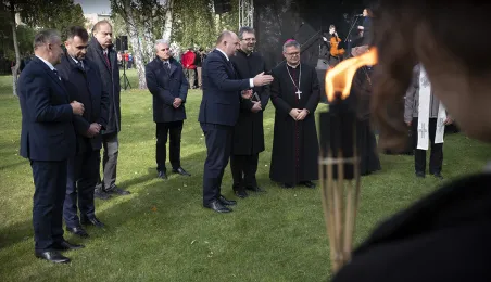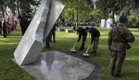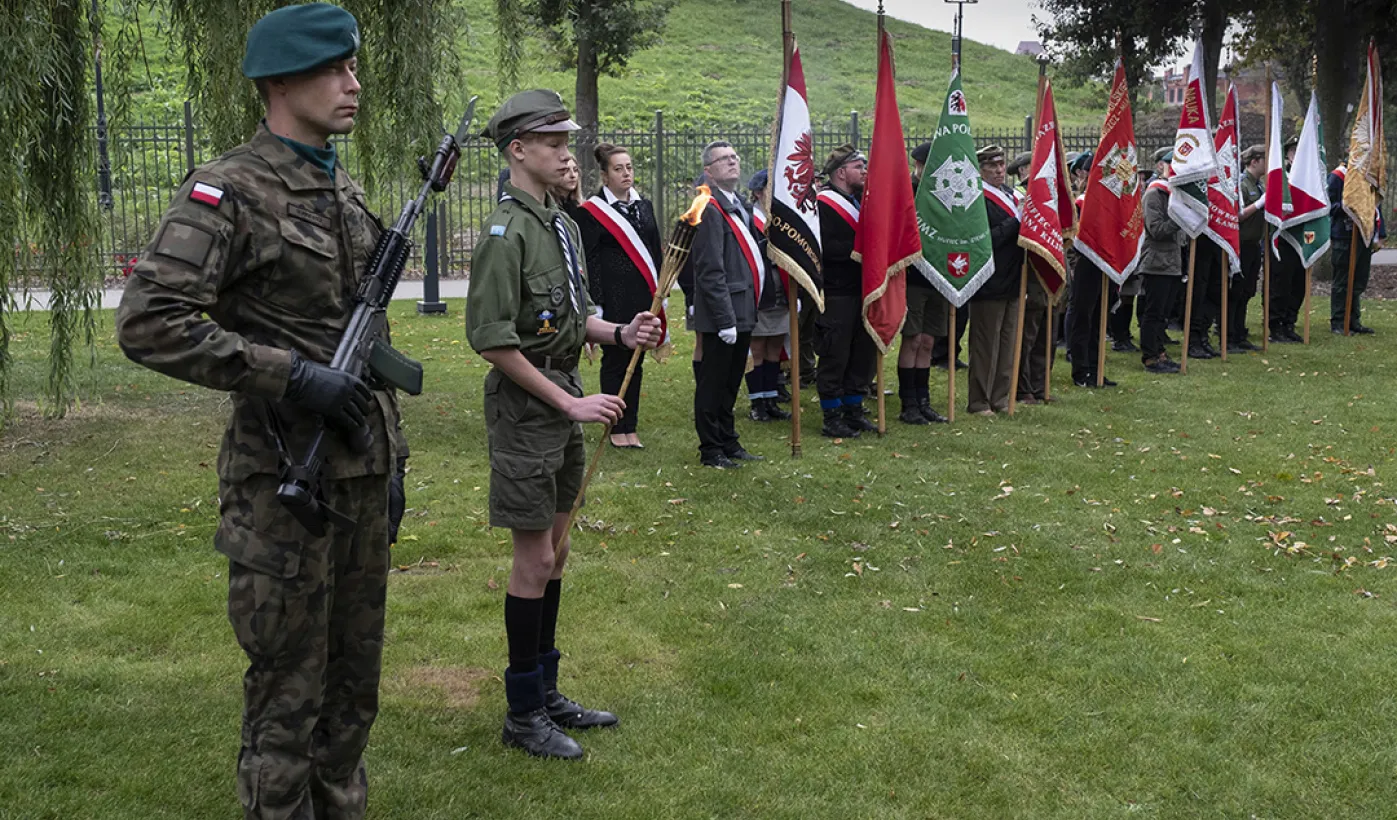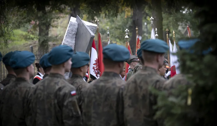 W dniu 2 października 2021 r. złożono kwaity pod Pomnikiem Pamięci Ofiar Zbrodni Pomorskiej 1939 r. Pomnik, który został odsłonięty w październiku 2018 roku, upamiętnia ok. 30 tysięcy cywilów zamordowanych przez hitlerowców na ziemiach pomorskich w 1939 roku. Fot. Wojtek Szabelski