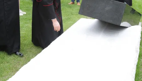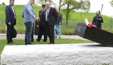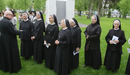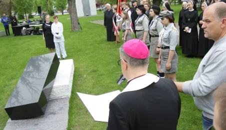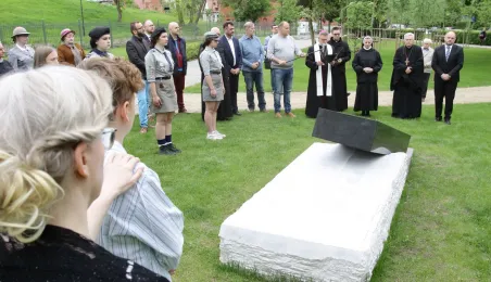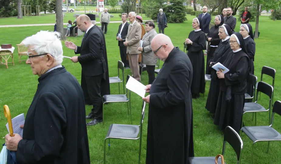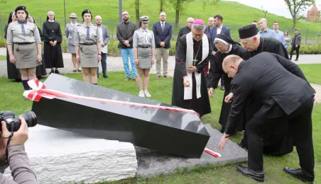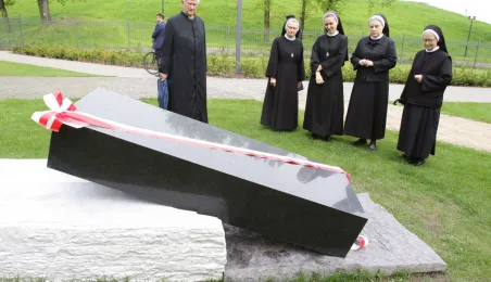 W toruńskim Parku Pamięci Ofiar Zbrodni Pomorskiej 1939 u zbiegu ulic Uniwersyteckiej i Dąbrowskiego 17 maja 2021 r. został odsłonięty pomnik upamiętniający pomordowanych w czasie wojny duchownych, zakonników i siostry zakonne. Autorem monumentu jest toruński artysta rzeźbiarz Zbigniew Mikielewicz. Fot. Adam Zakrzewski