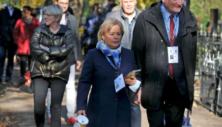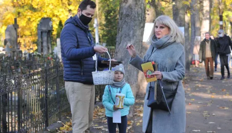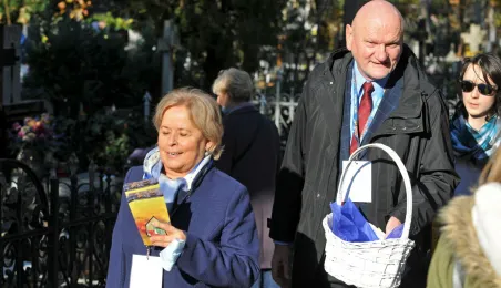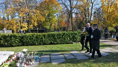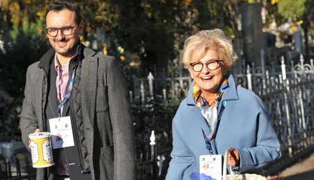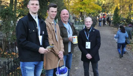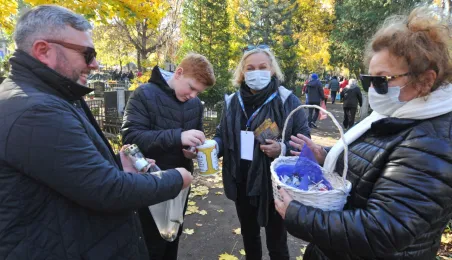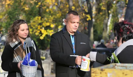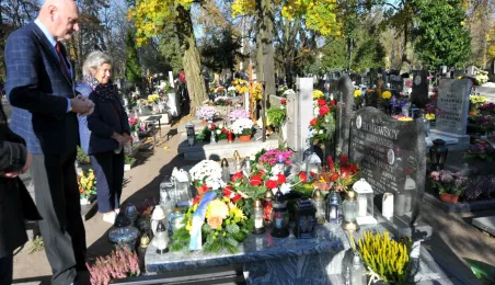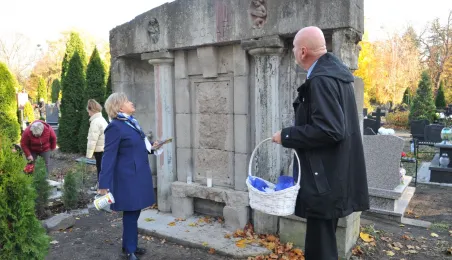 1 listopada 2021 r. po raz dziewiętnasty odbyła się kwesta na cmentarzu św. Jerzego, organizowana przez Urząd Miasta i Towarzystwo Miłośników Torunia. Znani torunianie i goście miasta zbierali datki na odnowę zabytkowych pomników najstarszej toruńskiej nekropolii. Prezydent Torunia Michał Zaleski złożył też kwiaty na gromach honorowych obywateli i osób zasłużonych dla miasta. Fot. Małgorzata Litwin