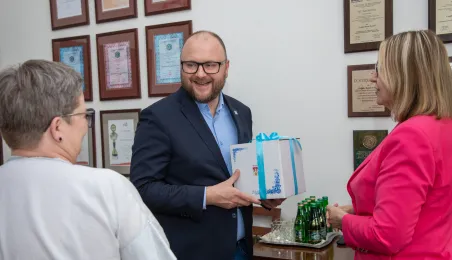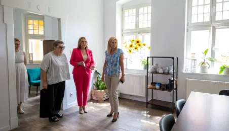 25 lipca 2024 r. w Toruniu gościła Monika Jabłońska, zastępczyni prezydenta Włocławka. Przyjechała, by zapoznać się z doświadczeniami utworzonego w 2022 r. Toruńskiego Centrum Usług Społecznych oraz prowadzonymi przez nie placówkami: Klubami Seniora, Dziennymi Domami Pobytu, Centrum Wsparcia Rodziny czy Centrum Rozwoju i Terapii. Z gościem spotkali się prezydent Paweł Gulewski i jego zastępczyni Dagmara Zielińska. Fot. Agnieszka Bielecka