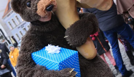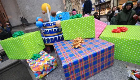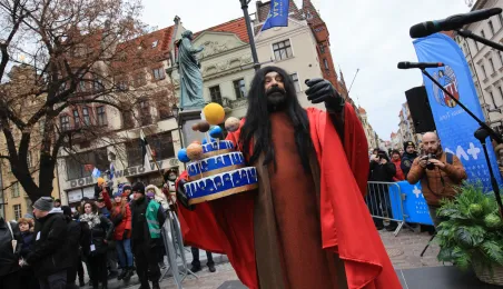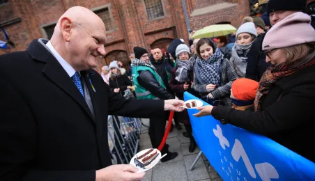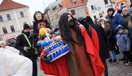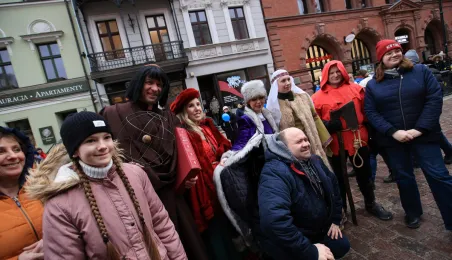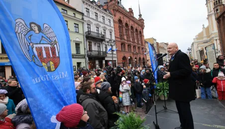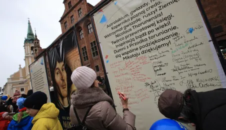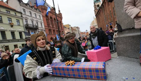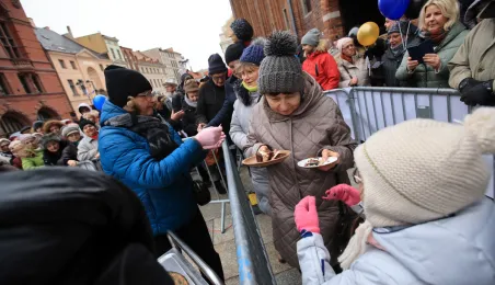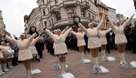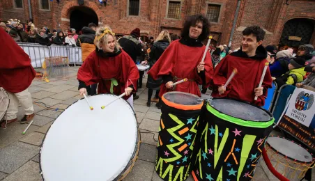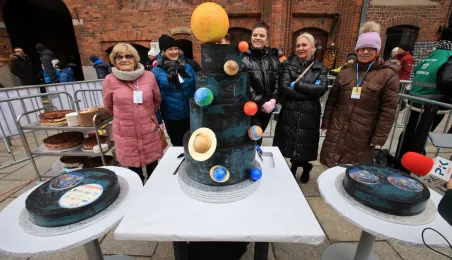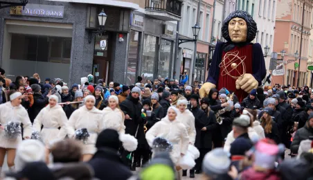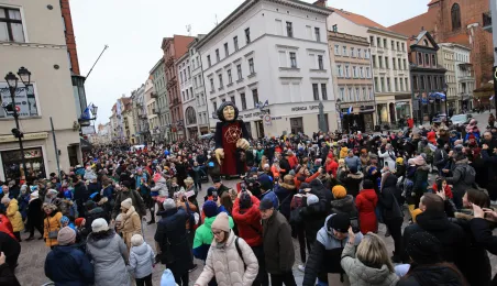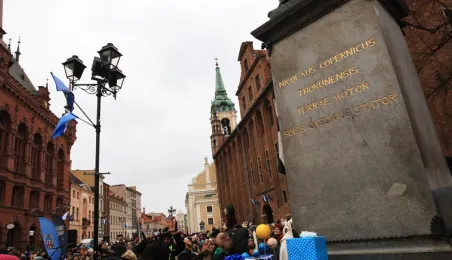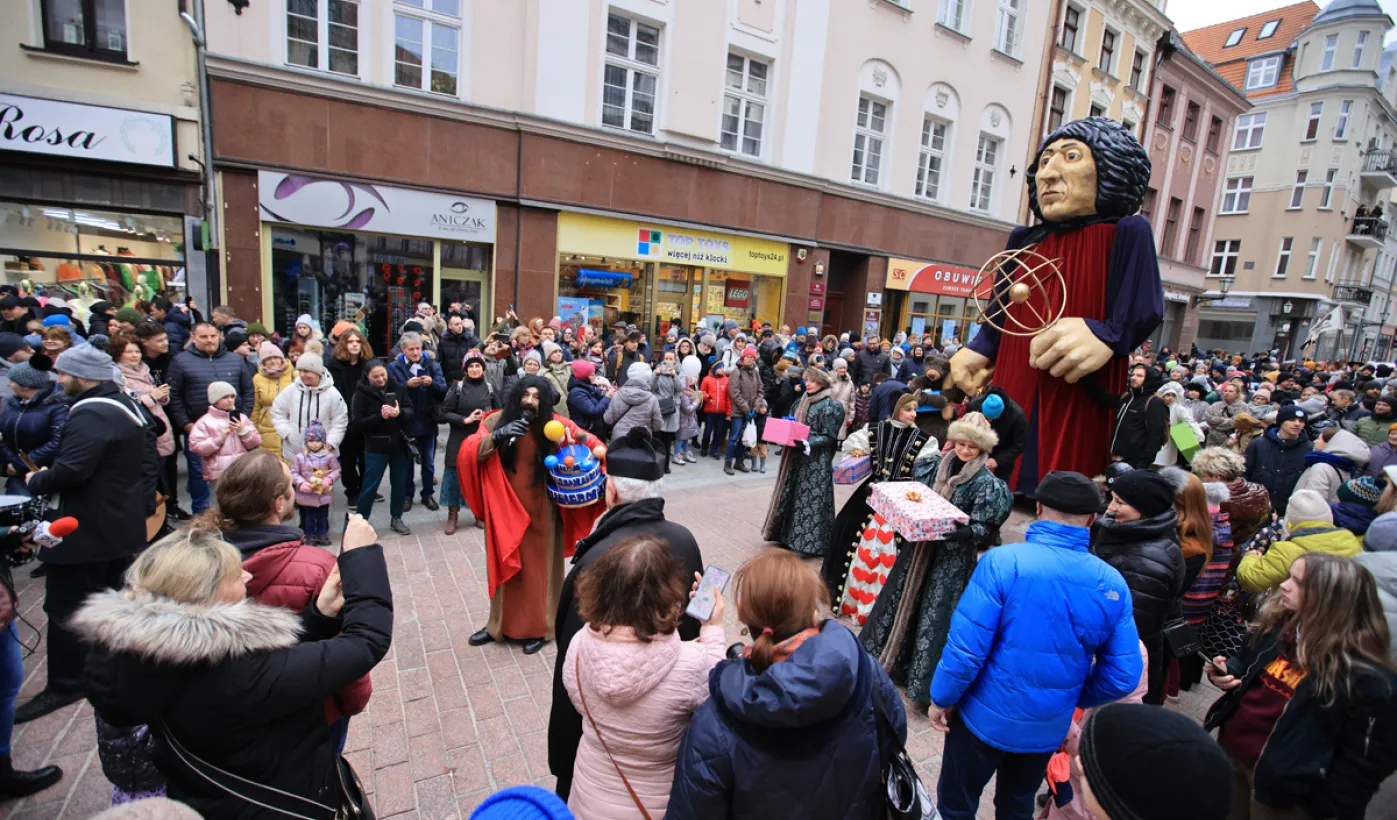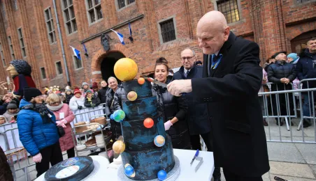 18 lutego 2023 r. na Rynku Staromiejskim odbyło się wydarzenie pod nazwą "Party u Kopernika", w ramach którego mieszkańcy obchodzili 550. rocznicę urodzin astronoma. Był specjalny tort, występ bębniarzy, parada. Fot. Sławomir Kowalski