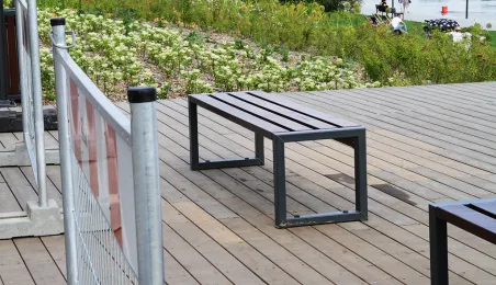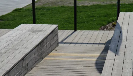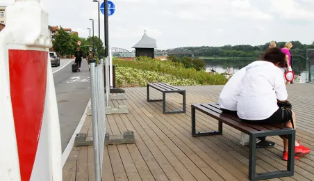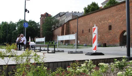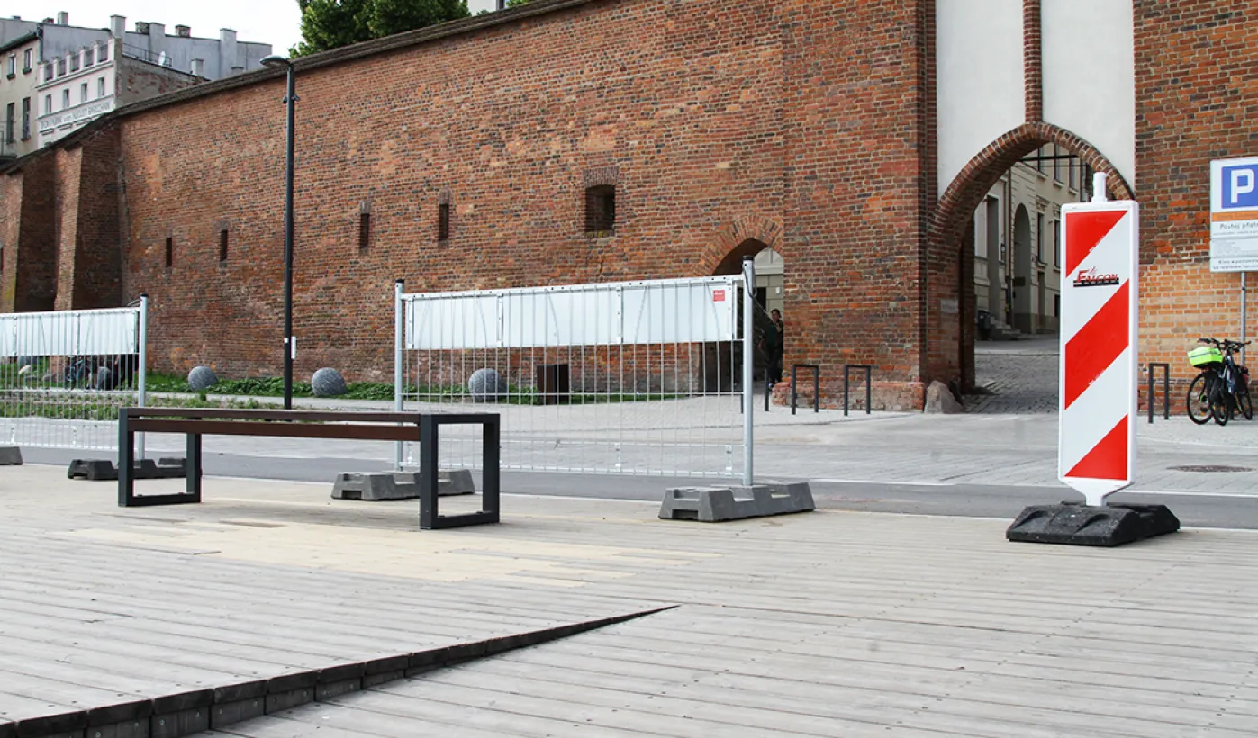 Po tym, jak 28 maja 2024 doszło do uszkodzenia drewnianych elementów pawilonu, który znajduje się na wysokości ul. Żeglarskiej zostały wykonane prace naprawcze i dodatkowe zabezpieczenia. / fot. Paula Gałązka