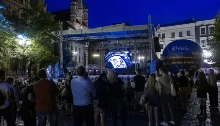 Spektakl "Mały Książę" wystawiony na Rynku Staromiejskim przez Teatr Piaskowa Magia był atrakcją Dni Torunia w piątkowy wieczór 21 czerwca 2024 r. Fot. Wojtek Szabelski