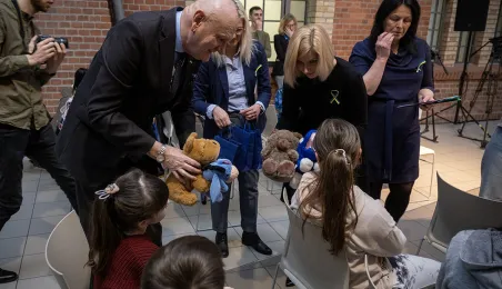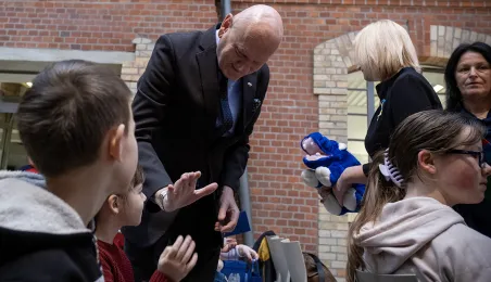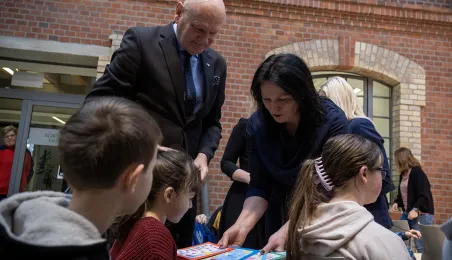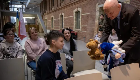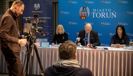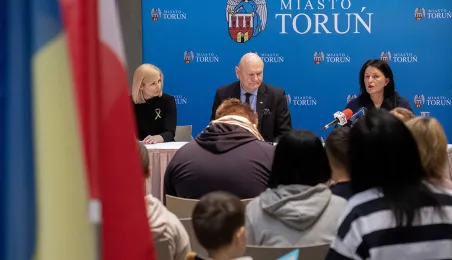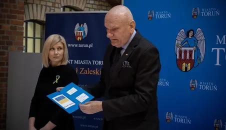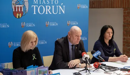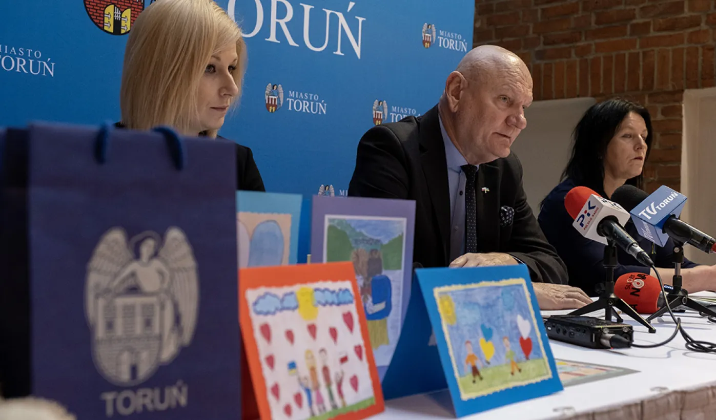 24 lutego 2023 r. w pierwszą rocznicę wybuchu wojny w Ukrainie prezydent Michał Zaleski podsumował wsparcie, jakiego udzieliło miasto i mieszkańcy uchodźcom. Informacje na temat rynku pracy dla obywateli Ukrainy przytoczyła Violetta Weroniecka, dyrektorka Powiatowego Urzędu Pracy, a o wydarzeniach i opiece - Dagmara Zielińska, dyrektorka Toruńskiego Centrum Usług Społecznych. Prezydent spotkał się także z grupą uchodźców mieszkających w MCSM. Fot. Wojtek Szabelski