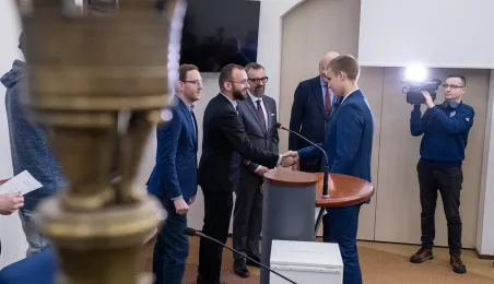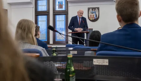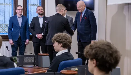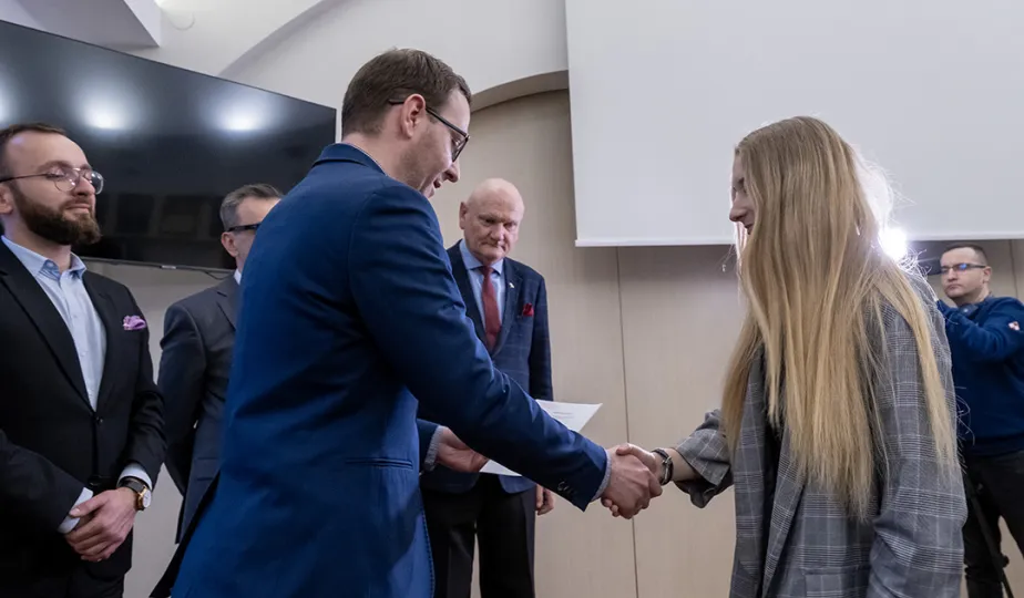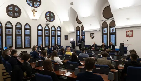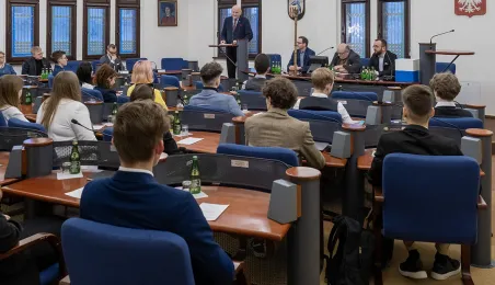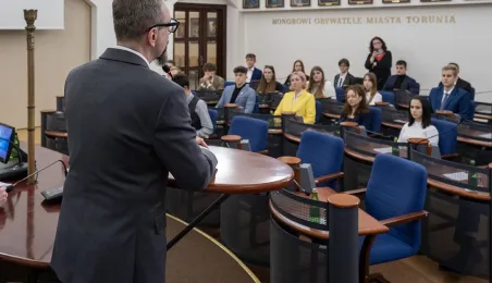 13 marca 2023 r. odbyło się pierwsze posiedzenie Młodzieżowej Rady Miasta Torunia. Młodzi radni odebrali zaświadczenia o swym członkostwie i wybrali przewodniczącego i wiceprzewodniczącego. Fot. Wojtek Szabelski