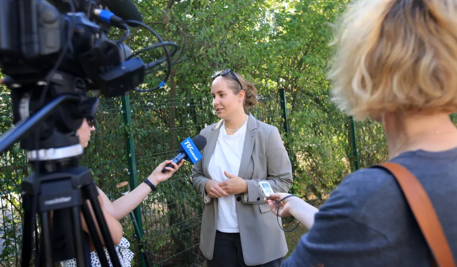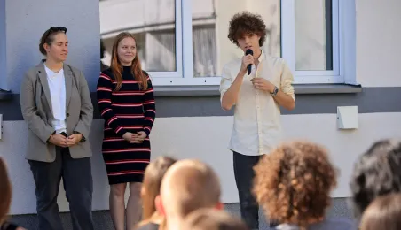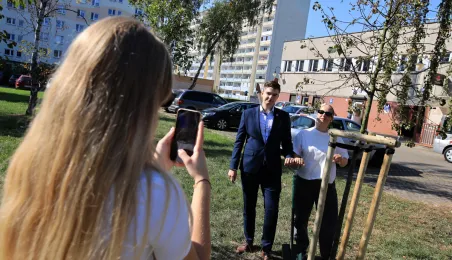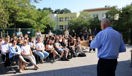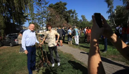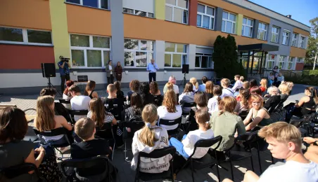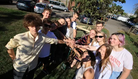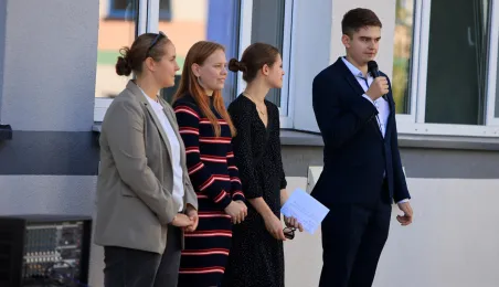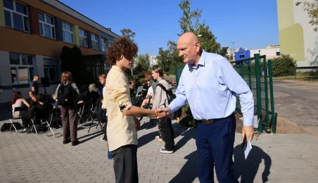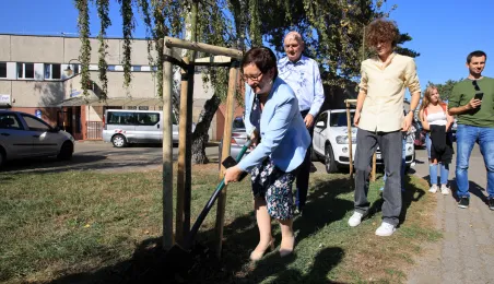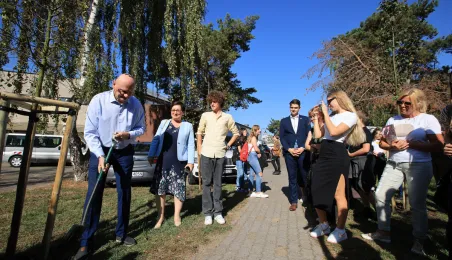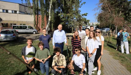 Młodzieżowa Rada Miasta Torunia zorganizowała 28 września 2023 r. piknik przy Przedszkolu Miejskim nr 13, którego ekologiczny charakter podkreśliły posadzone przez młodzież drzewa w parku przy Pawilonie Maciej na Rubinkowie III. W pikniku wziął udział prezydent Michał Zaleski. Fot. Sławomir Kowalski