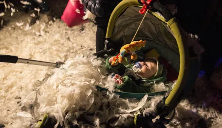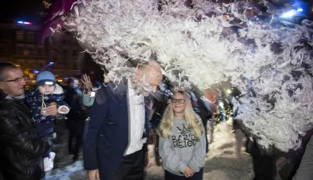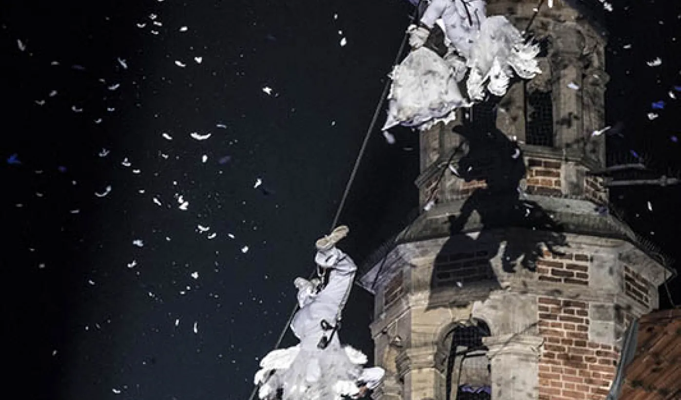 Burza oklasków i tona białego puchu przetoczyły się w sobotni wieczór przez toruńską starówkę. Tłumy widzów oklaskiwały spektakl "Plac Aniołów" w wykonaniu francuskiej grupy Gratte Ciel. Widowisko odbyło się w ramach świętowania 20. rocznicy wpisania na Listę Światowego Dziedzictwa UNESCO w Toruniu.