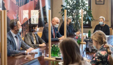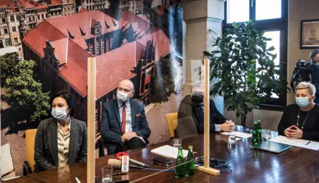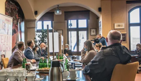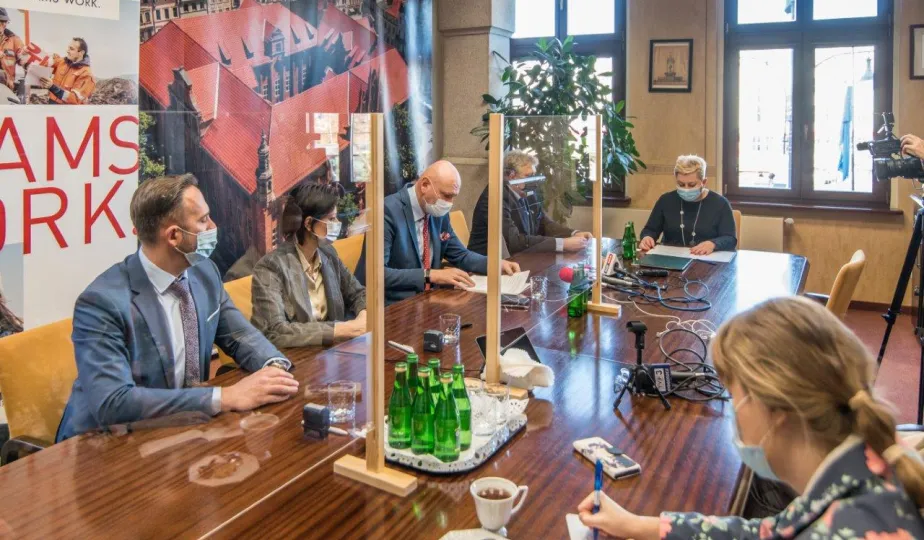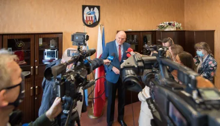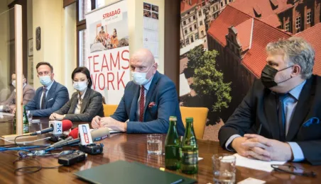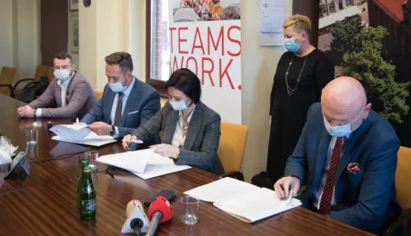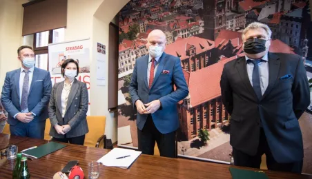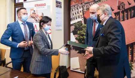 W dniu 22 listopada 2021 r. podpisana została umowa między Miejskim Zarządem Dróg w Toruniu i wykonawcą, formą Strabag, na budowę dwóch parkingów typu Park and Ride, zlokalizowanych przy ul. Dziewulskiego i Olimpijskiej. W spotkaniu udział wziął prezydent Michał Zaleski. Fot. Lech Kamiński