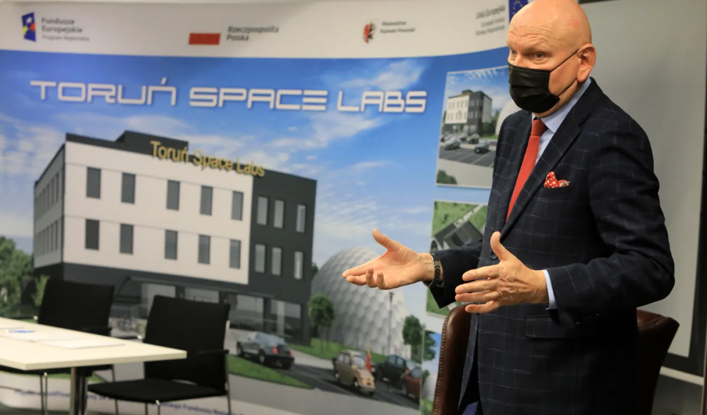 Do lipca 2023 r. przy ul. Łokietka w Toruniu powstanie kompleks Toruń Space Labs – ośrodek innowacyjnych badań technologicznych. 12 stycznia 2022 r. przedstawiciele miejskiej spółki Urbitor podpisali umowę z głównym wykonawcą inwestycji - firmą Wegner Sp. z o.o. Sp. k. Toruń Space Lab będzie miejscem badań i twórczej wymiany wiedzy i doświadczeń z zakresu nowoczesnych technologii, m.in. kosmicznych, dotyczących robotyzacji obserwacji astronomicznych i budowy komponentów technologii satelitarnych. Na projekt miasto pozyskało środki unijne z Regionalnego Programu Operacyjnego Województwa Kujawsko-Pomorskiego na lata 2014-2020. Szacowana łączna wartość inwestycji to ponad 22 mln zł, z czego dofinansowane ze środków Europejskiego Funduszu Rozwoju Regionalnego - ponad 15,3 mln zł. Fot. Sławomir Kowalski