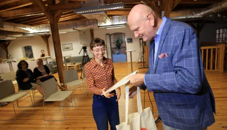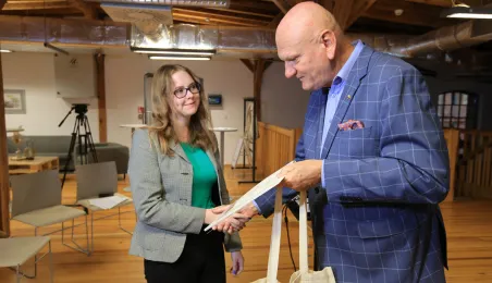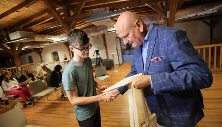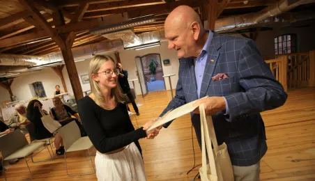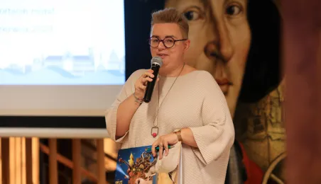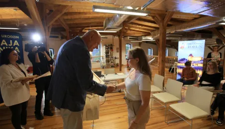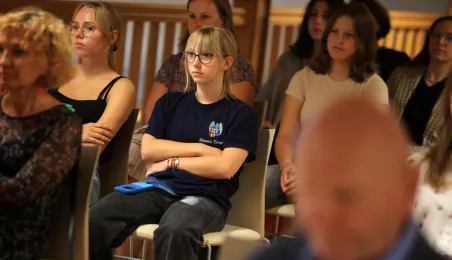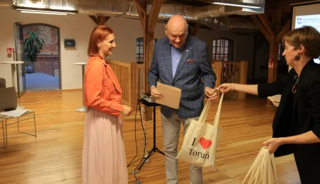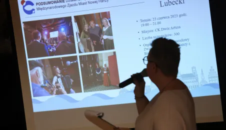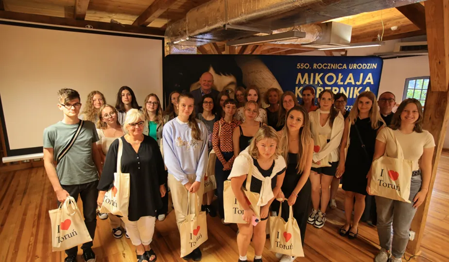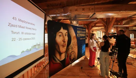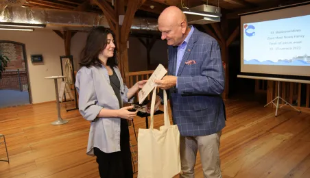 19 września 2023 r. w Międzynarodowym Centrum Spotkań Młodzieży podczas podsumowania 43. Międzynarodowego Zjazdu Miast Nowej Hanzy, który odbywał się w Toruniu w czerwcu 2023 r., prezydent Michał Zaleski podziękowal wolontariuszom - uczniom trzech toruńskich liceów ogólnokształcących: nr 1, nr 5 i nr 10. Fot. Sławomir Kowalski