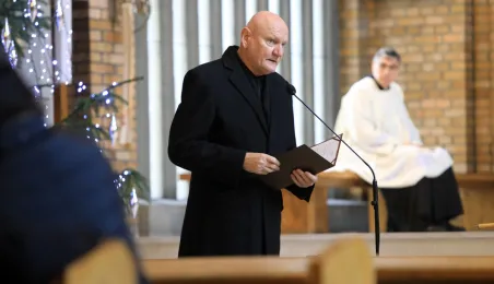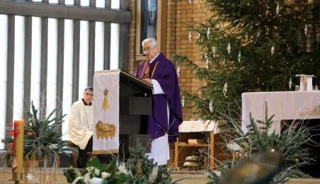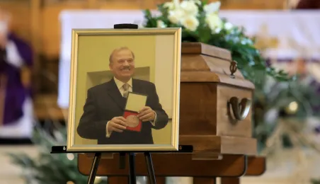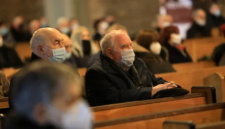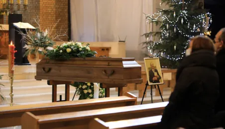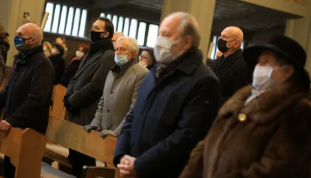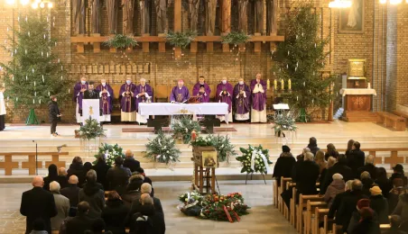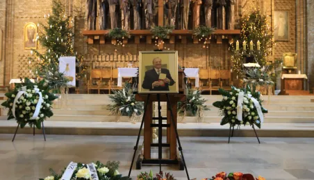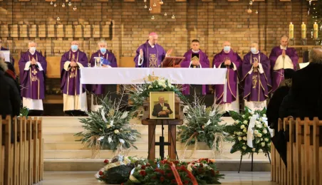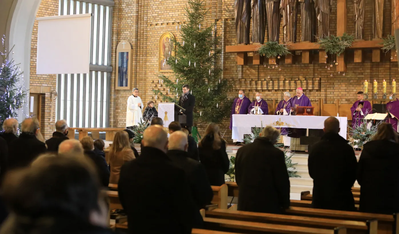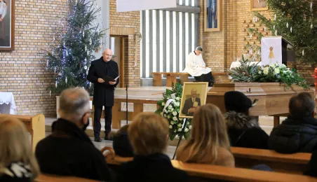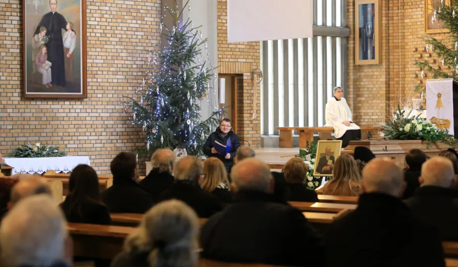Toruń pożegnał prof. dr hab. Józefa Flika. Wybitny znawca i konserwator malarstwa, były dziekan Wydziału Sztuk Pięknych UMK i wieloletni pracownik Muzeum Okręgowego w Toruniu, zmarł 27 grudnia 2021 r. w wieku 85 lat. Po mszy św. żałobnej w kościele o.o. michalitów na toruńskich Rybakach, 4 stycznia 2022 r. Zmarły został przewieziony i pochowany na cmentarzu w Bydgoszczy. Fot. Sławomir Kowalski