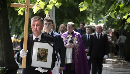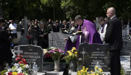 3 czerwca 2022 r. tłumy torunian – rodziny, przedstawicieli władz miasta, przyjaciół, koleżanek i kolegów z pracy, uczniów i podopiecznych – żegnały śp. Anitę Nowak, niespodziewanie zmarłą 29 maja, w wieku 53 lat, toruńską nauczycielkę, wychowawczynię i wolontariuszkę. Fot. Wojtek Szabelski