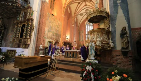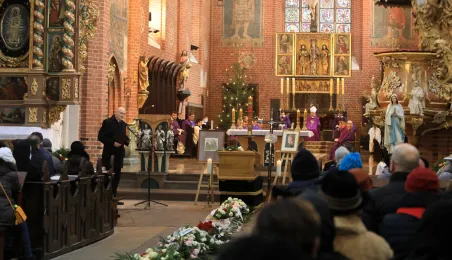 W dniu 8 stycznia 2022 r. na cmentarzu św. Jerzego została pochowana toruńska artystka Krystyna Szalewska-Gałdyńska. Msza św., odprawiana przez biskupa diecezji toruńskiej, ks. Wieslawa Śmigla, odbyła się w katedrze śś. Janów. Fot. Sławomir Kowalski