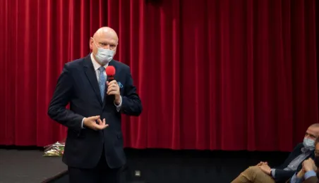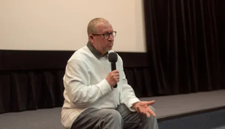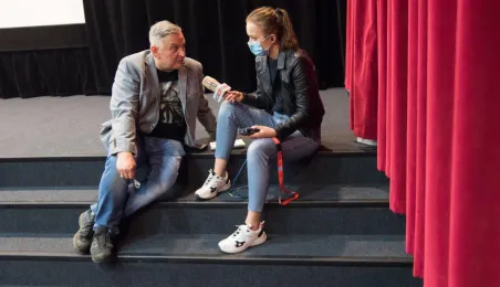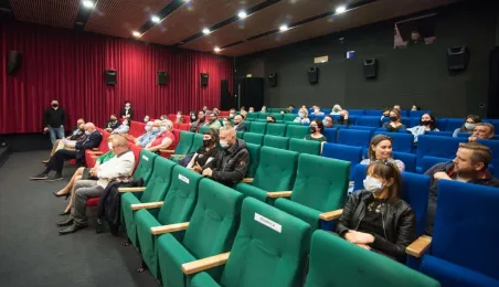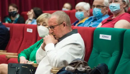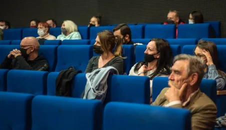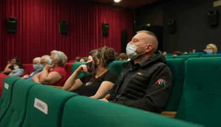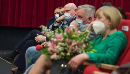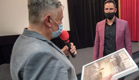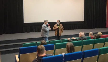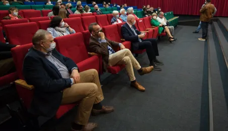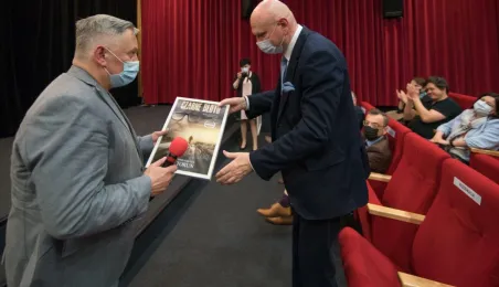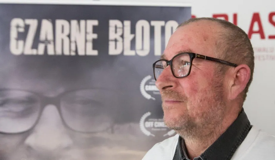„Czarne błoto” to najnowszy film toruńskiego dokumentalisty Ryszarda Kruka. Specjalny pokaz obrazu odbył się 27 maja 2021 r. w Kinie Centrum w CSW. Na projekcji obecny był prezydent Michał Zaleski. Fot. Lech Kamiński