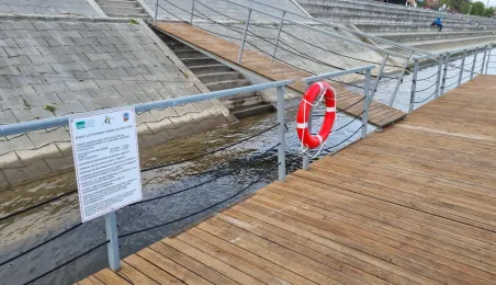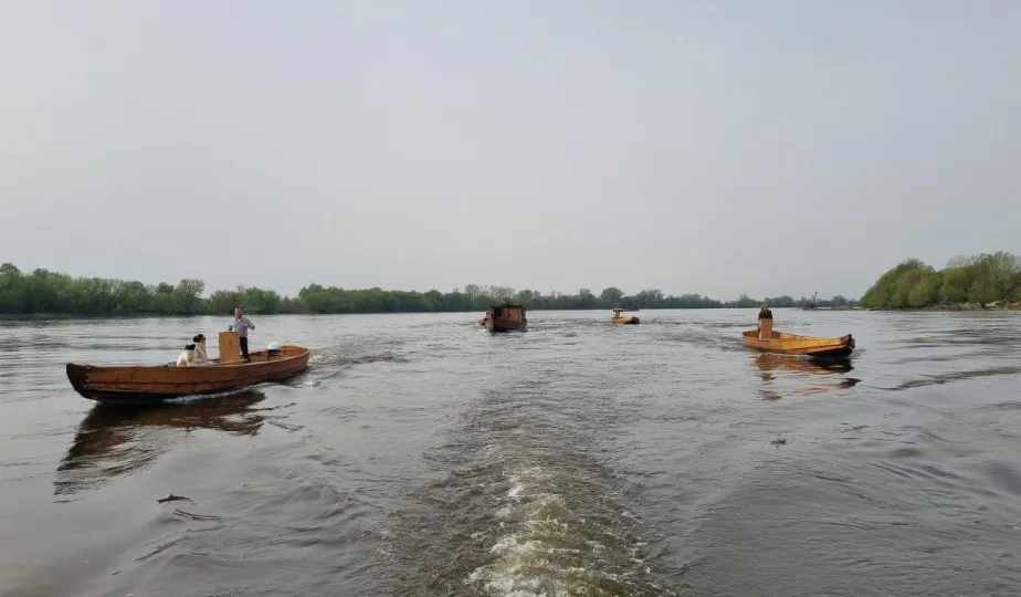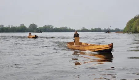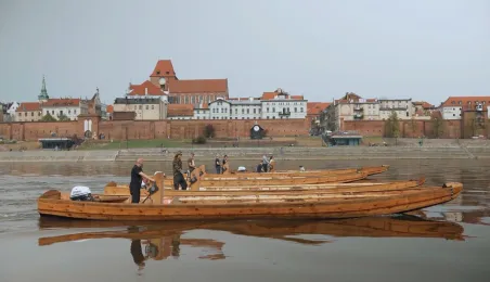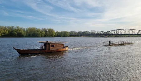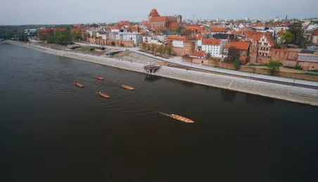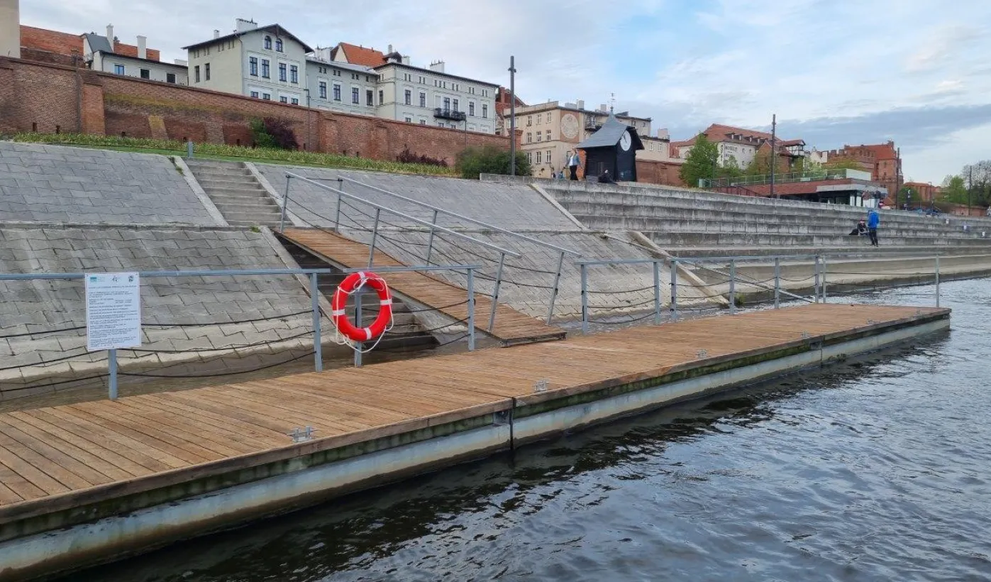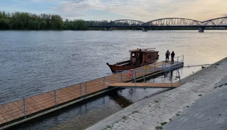 Na Bulwarze Filadelfijskim zakończył się montaż dwóch pływających pomostów służacych do obsługi łodzi flisaczych, które już wykonały swoje rejsy testowe. Fot. Marcin Karasiński, Marcin Jóźwiak