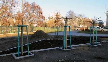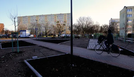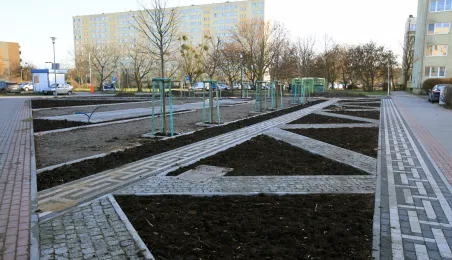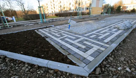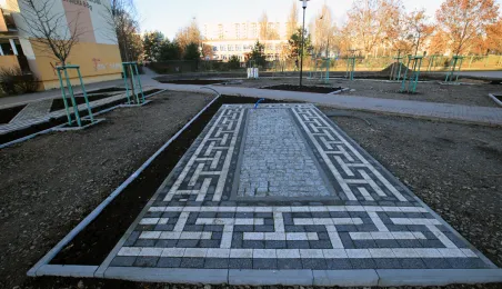 „Greckie klimaty” to nazwa parku kieszonkowego powstającego na Rubinkowie przy ul. Rydygiera. Prace związane z realizacją tego zadania są zaawansowane. Wykonane zostały nawierzchnie spacerowe, które mają charakterystyczne motywy greckie. Trwa montaż małej architektury, nasadzone zostały drzewa. Fot. Sławomir Kowalski