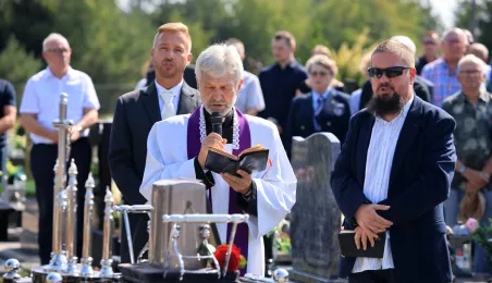 7 września 2023 r. na cmentarzu w Kaszczorku odbył się pogrzeb śp. Piotra Winczury, wioślarza, wielokrotnego reprezentanta Polski, uczestnika mistrzostw świata i zawodów olimpijskich, także cenionego szkoleniowca w AZS UMK Toruń. W ceremonii pogrzebowej uczestniczył prezydent Michał Zaleski. Fot. Sławomir Kowalski