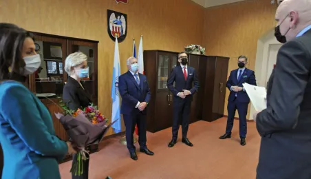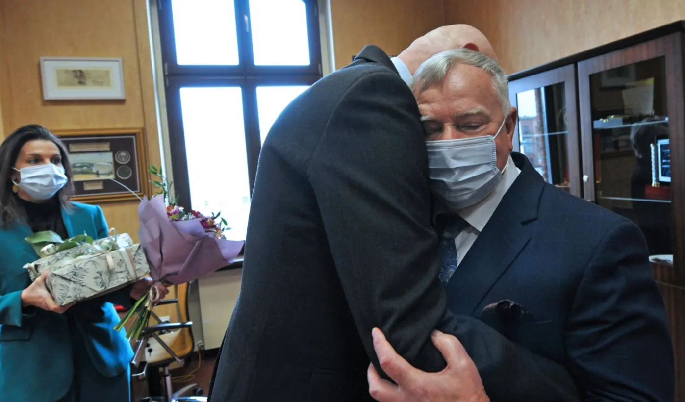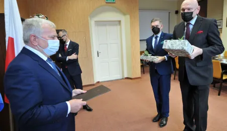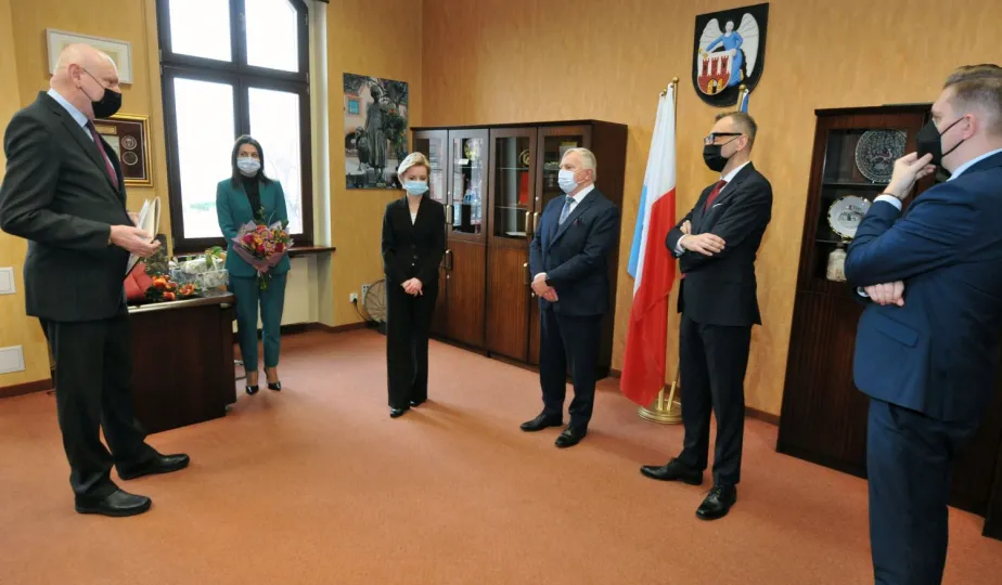 Ze stanowiska zastępcy prezydenta miasta Torunia odchodzi długoletni samorządowiec Zbigniew Fiderewicz. Zakończenie ponad 40-letniej kariery zawodowej w admistracji publicznej ma związek ze stanem zdrowia 66-letniego wiceprezydenta. Uroczyste pożegnanie Zbigniewa Fiderewicza z udziałem członków kierownictwa urzędu miało miejsce 23 lutego 2022 r., w Urzędzie Miasta Torunia. Wiceprezydenta żegnali prezydent Michał Zaleski i jego zastępcy Adrian Mól i Paweł Gulewski, pani Skarbnik Aneta Pietrzak, przewodniczący Rady Miasta Torunia Marcin Czyżniewski oraz szefowa działu kadr Kamila Andrzejewska. Fot. Małgorzata Litwin