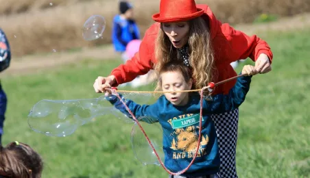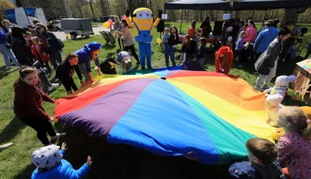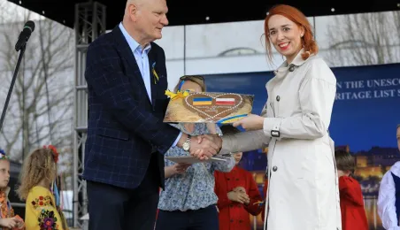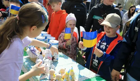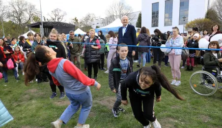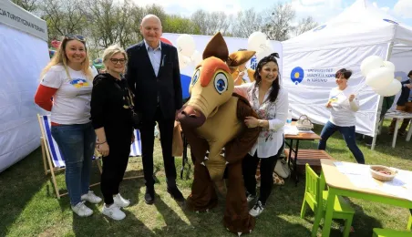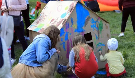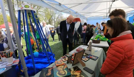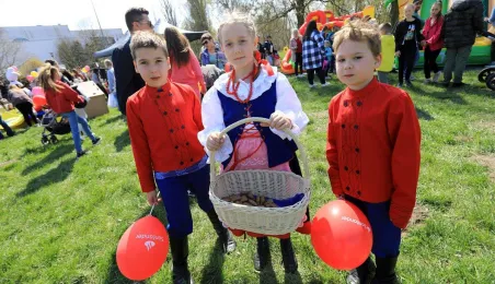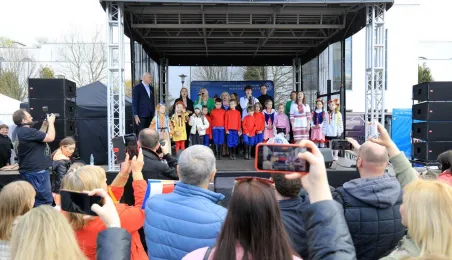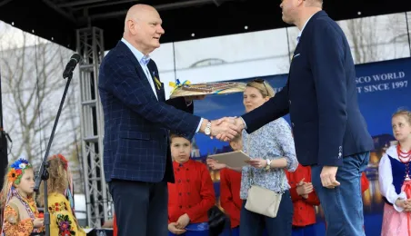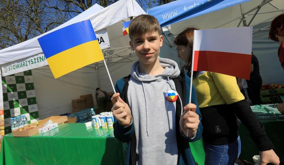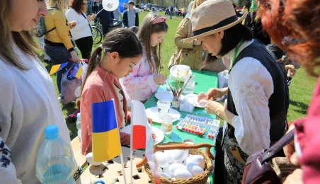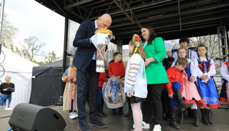 Gwarny, roześmiany i rozśpiewany – taki był piknik „Poznajmy się”, zorganizowany dla polskich i ukraińskich rodzin oraz wolontariuszy wspierających uchodźców z Ukrainy, który odbył się 23 kwietnia 2022 r. Podczas wydarzenia prezydent Michał Zaleski podziękował wolontariuszom, którzy pomagają uchodźcom. Fot. Sławomir Kowalski
