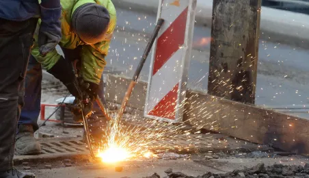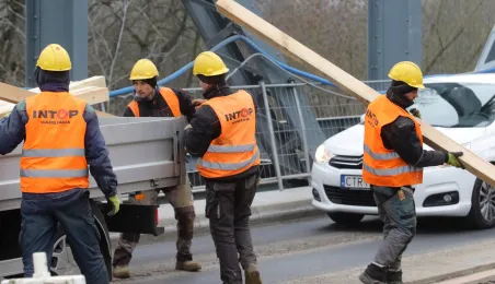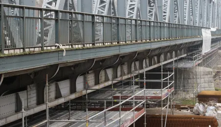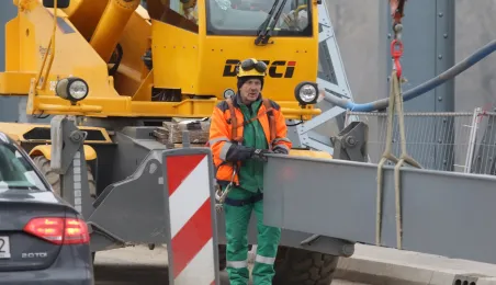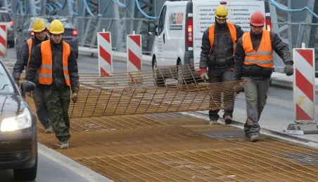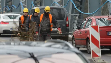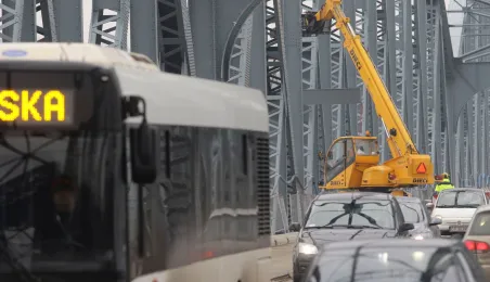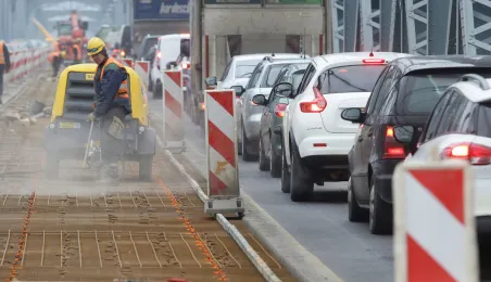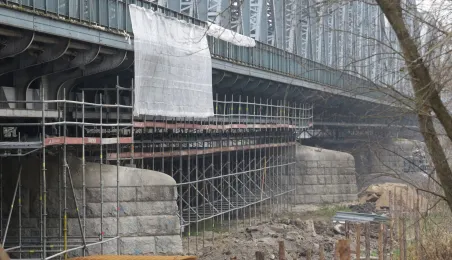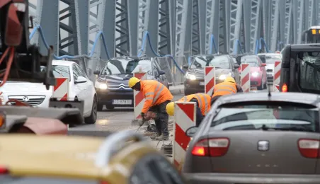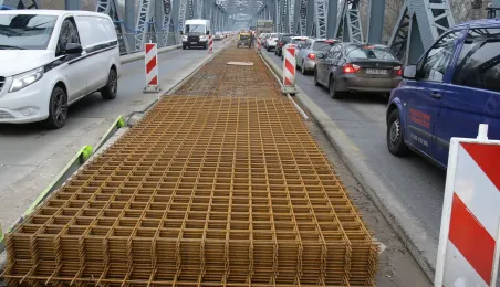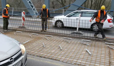Pomimo ochłodzenia prace na moście drogowym im. Marszałka Józefa Piłsudskiego są realizowane na kilku frontach. Od najbliższej soboty (12.12.2020) wyłączony zostanie z ruchu pas środkowy na całej długości. Fot. Adam Zakrzewski