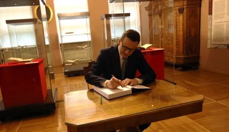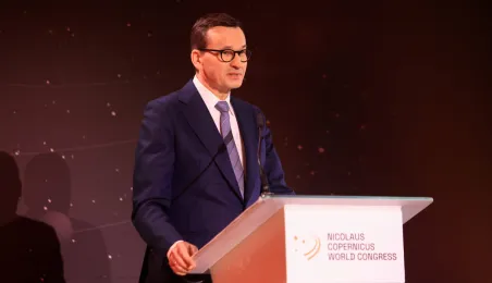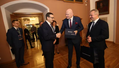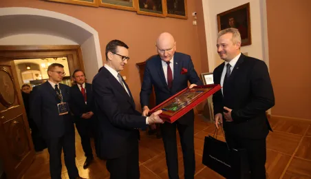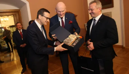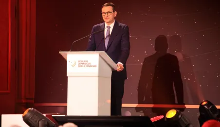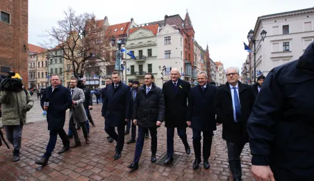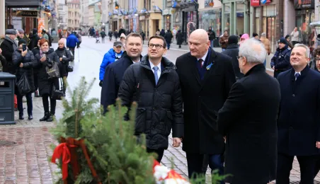 W poniedziałek 20 lutego 2023 r. do Torunia z okazji obchodów 550. rocznicy urodzin Mikołaja Kopernika przybył premier Mateusz Morawiecki. Zdj. Sławomir Kowalski