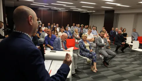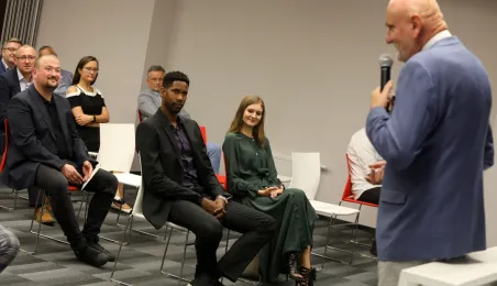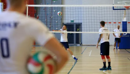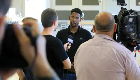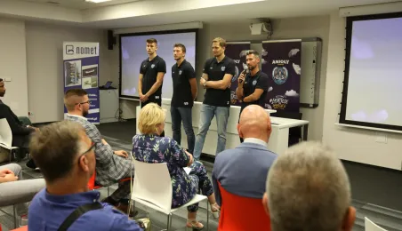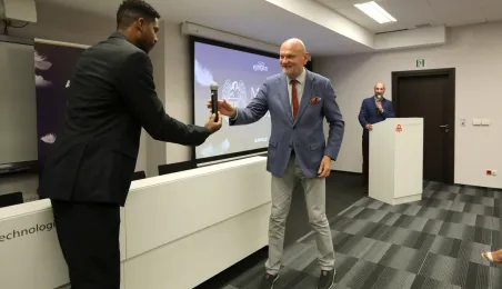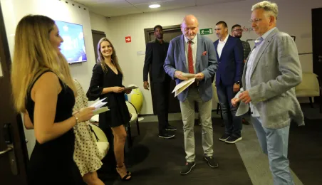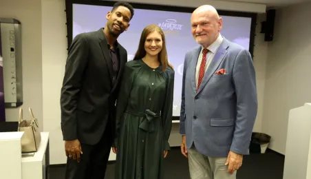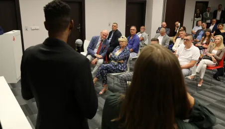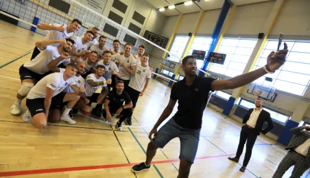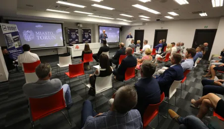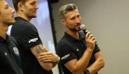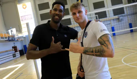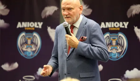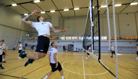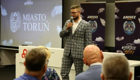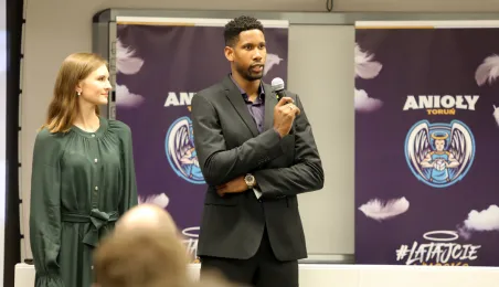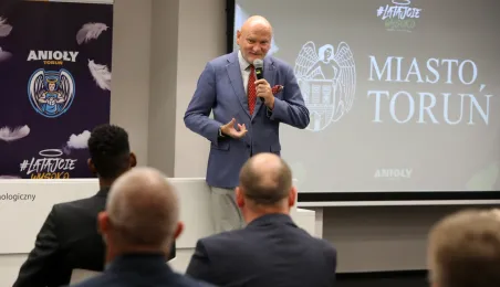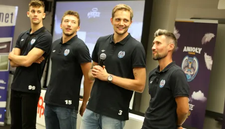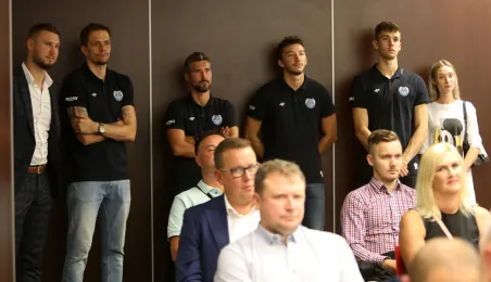 W dniu 12 sierpnia 2021 r. w sali Uniwersyteckiego Centrum Sportowego odbył się trening pokazowy nowej toruńskiej drużyny siatkarskiej - Anioły Toruń. Następnie w Toruńskim Inkubatorze Technologicznym odbyło się spotkanie z zawodnikami oraz współautorem projektu i głównym udziałowcem klubu Wilfredo Leonem. W spotkaniu wziął udział prezydent Michał Zaleski. Fot. Sławomir Kowalski