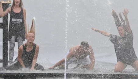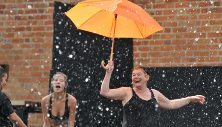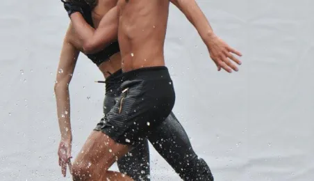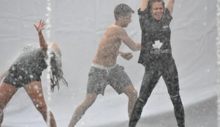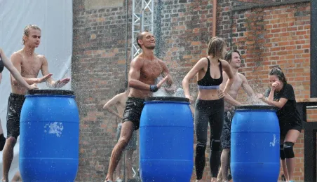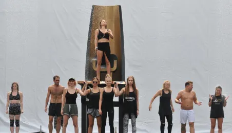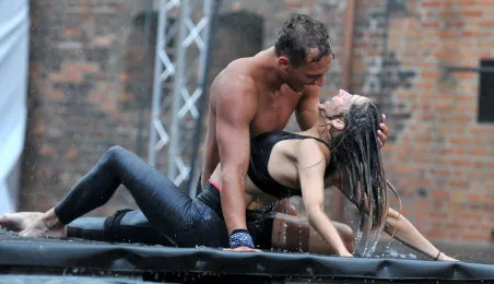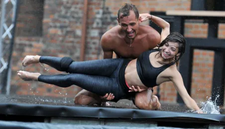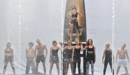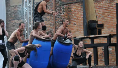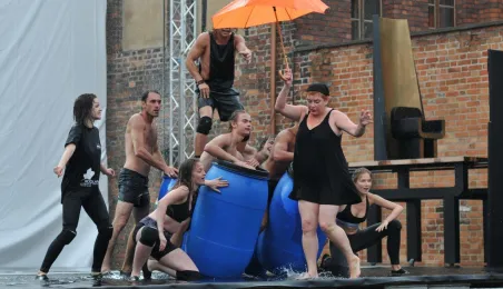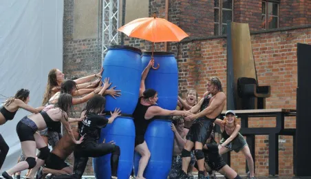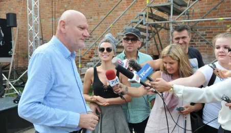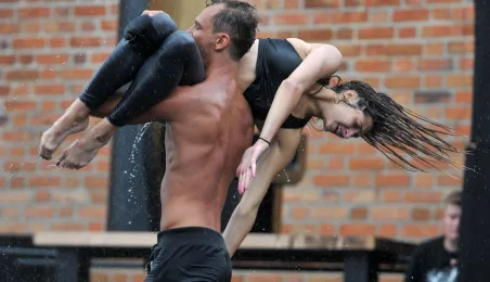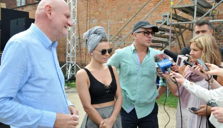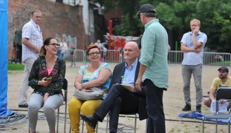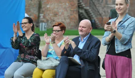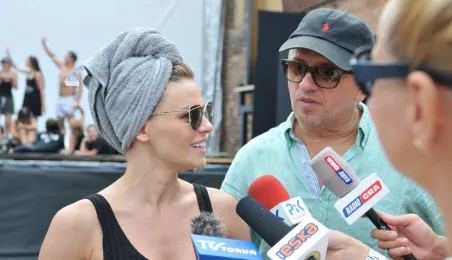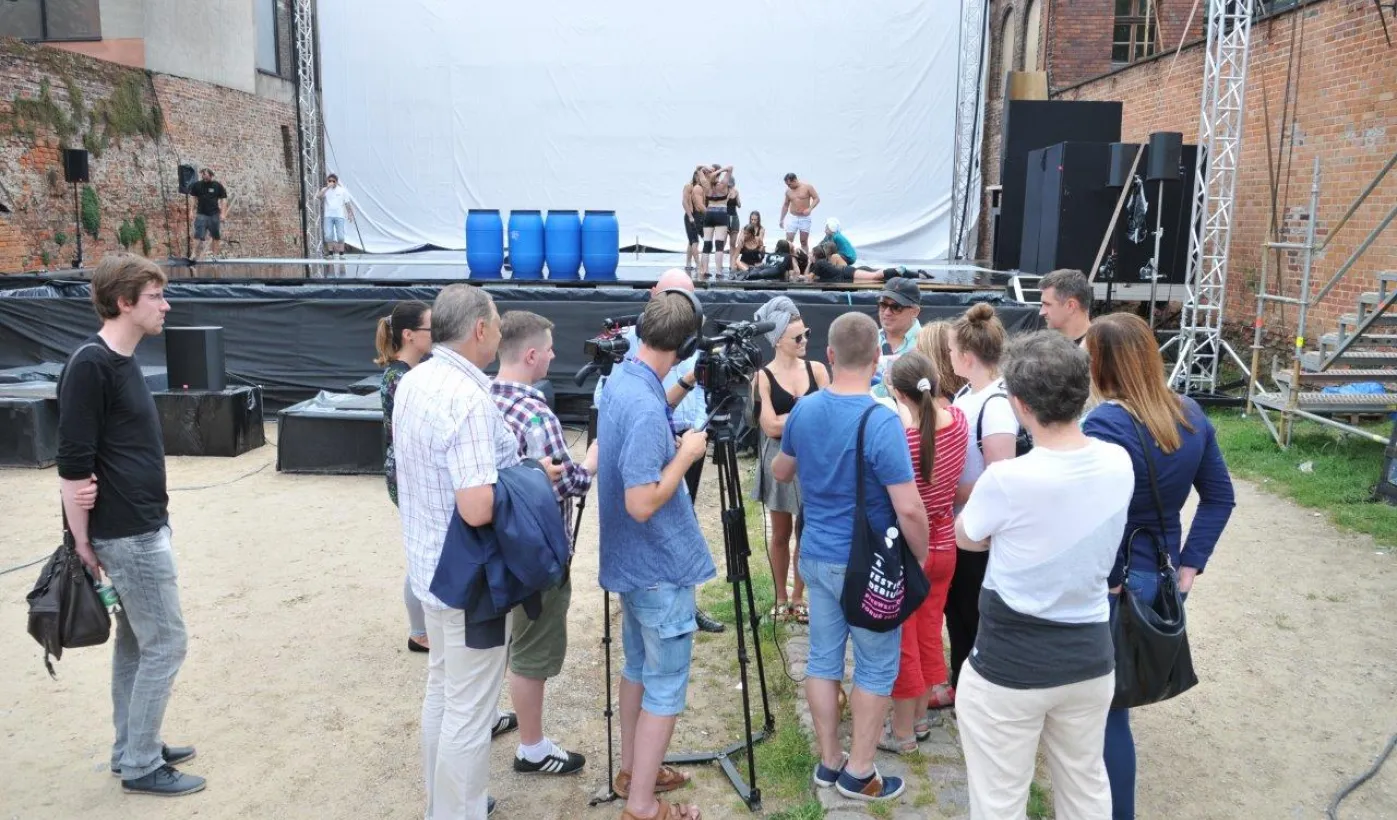 W fosie zamkowej w Toruniu trwają próby do zaplanowanego na weekend 4-6 sierpnia 2017 r. spektaklu "Romeo i Julia 3D". Spektakl w wykonaniu aktorów Teatru Studio Buffo, w reżyserii Janusza Józefowicza i z udziałem Nataszy Urbańskiej - to pierwsze na świecie wystawienie musicalu 3D Live, prezentowanego na kurtynach wodnych (przygotowanych przez Water Concept). Jeden z trzech zaplanowanych w Toruniu spektakli uświetni w sobotę, 5 sierpnia ceremonię zakończenia Światowych Igrzysk Polonijnych. 2 sierpnia przygotowania do widowiska obserwował prezydent Torunia Michał Zaleski. Fot. Małgorzata Litwin
