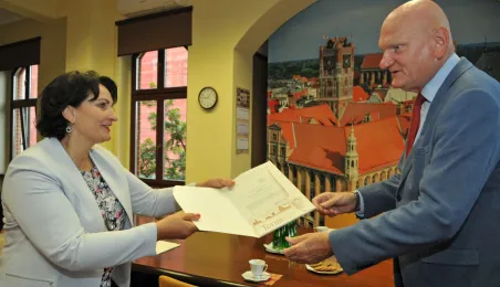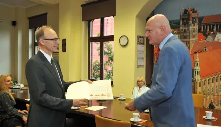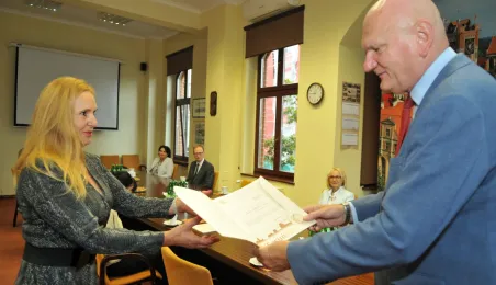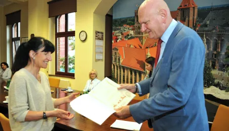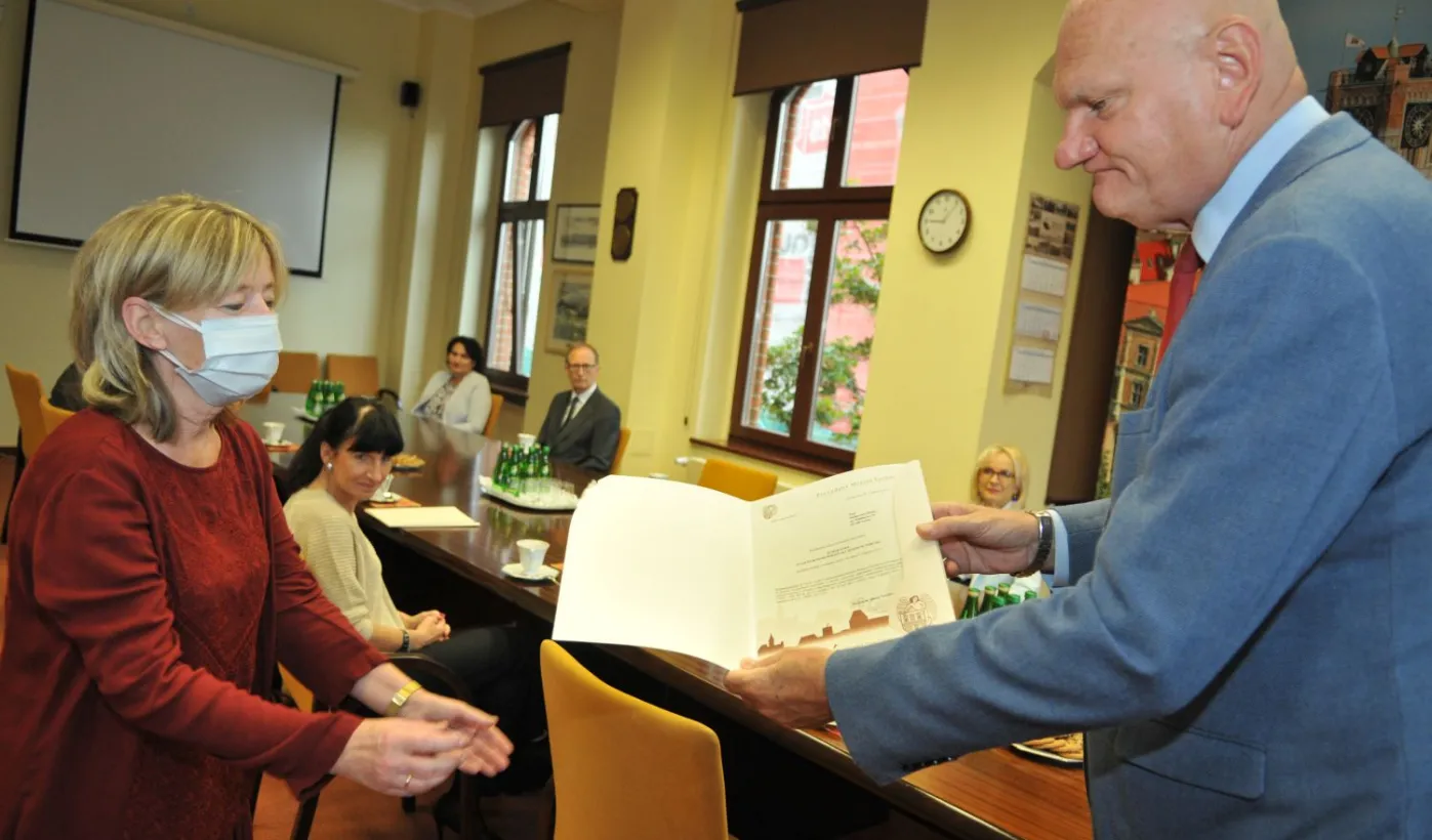 W związku z pandemią koronawirusa Prezydent Miasta Torunia przedłużył o rok umowy dyrektorom 8 toruńskich placówek oświatowych. Wręczenie decyzji w tej sprawie odbyło się 28 sierpnia 2020 r. w Urzędzie Miasta Torunia. Fot. Małgorzata Litwin