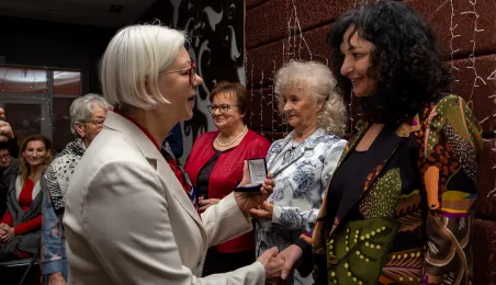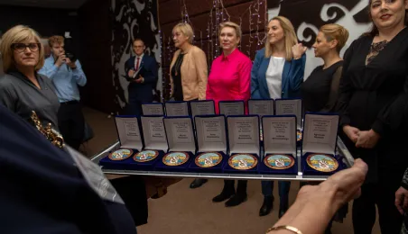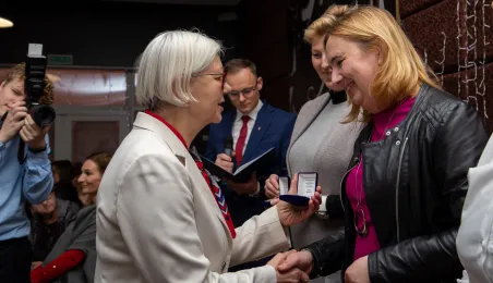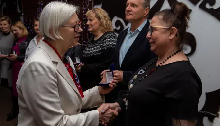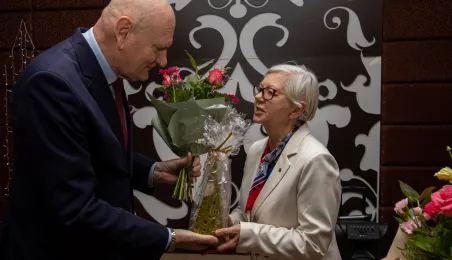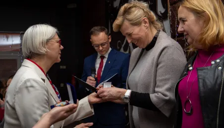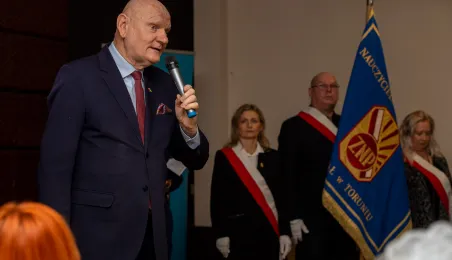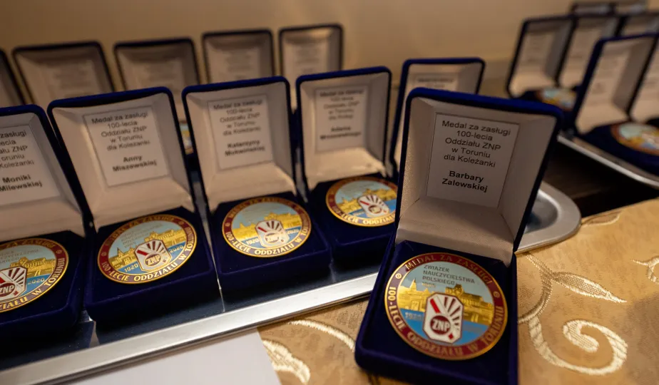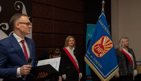 Toruński oddział Związku Nauczycielstwa Polskiego obchodzi swoje 10-lecie. Z tej okazji, a także z okazji zbliżających się Świąt Bożego Narodzenia związkowcy spotkali się 9 grudnia 2023 r. w X LO. Fot. Agnieszka Bielecka