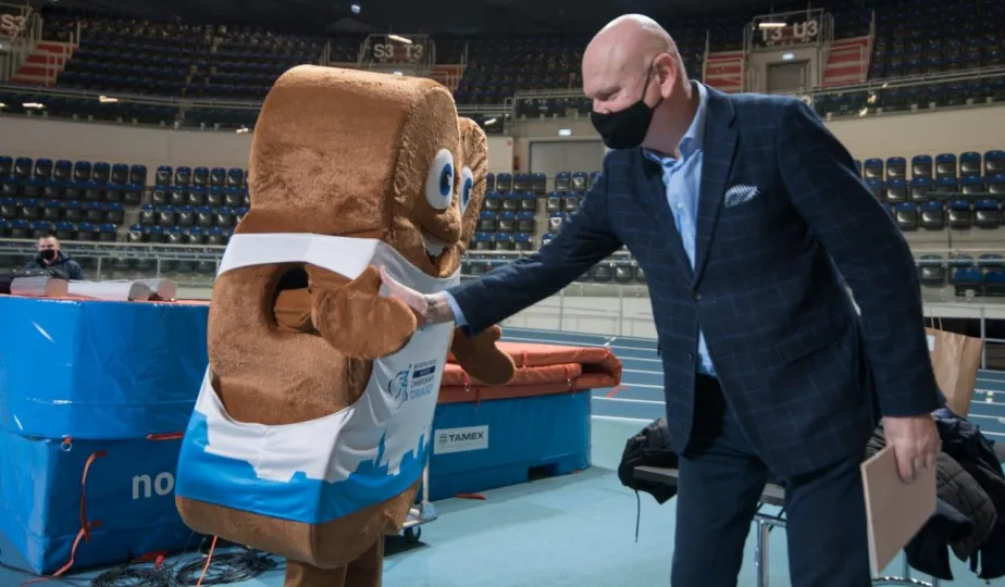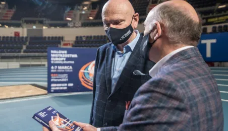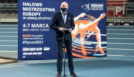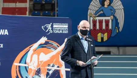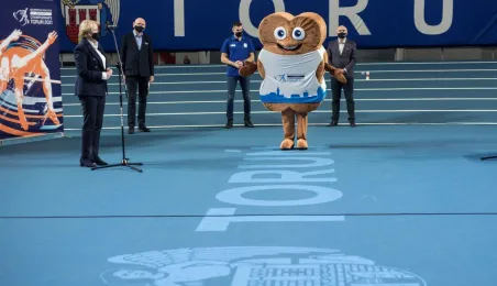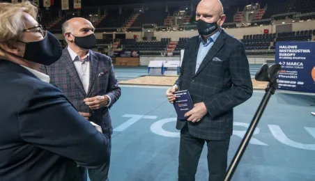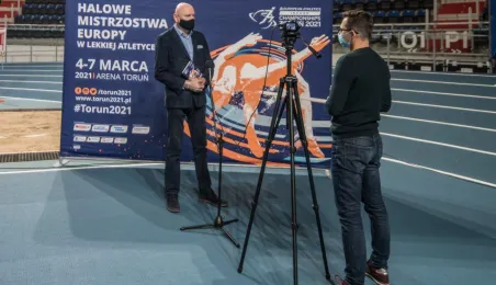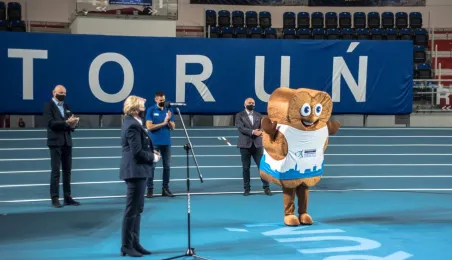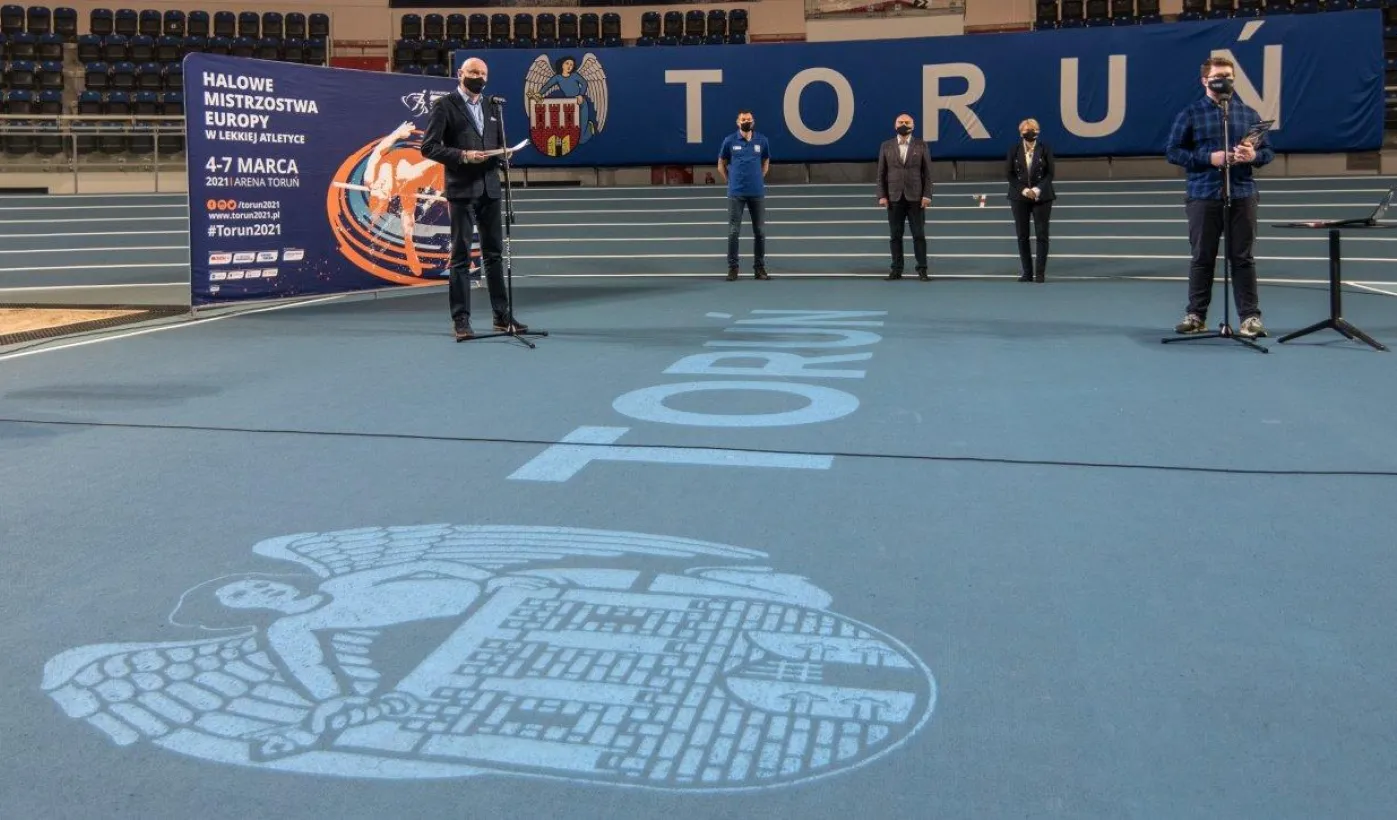 W dniach 4-7 marca 2021 roku w Toruniu mają odbyć się Halowe Mistrzostwa Europy w Lekkoatletyce. Toruń jest gotowy do organizacji prestiżowych zawodów, o czym mówiono w dniu 4 grudnia 2020 r. podczas konferencji prasowej, która odbyła się w hali Arena Toruń. Fot. Lech Kamiński