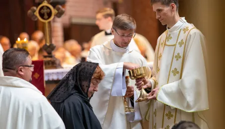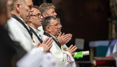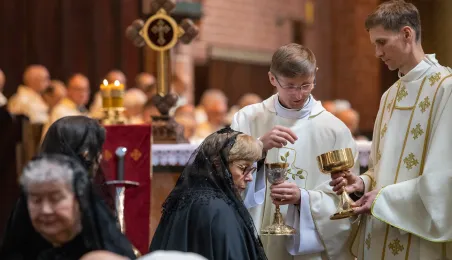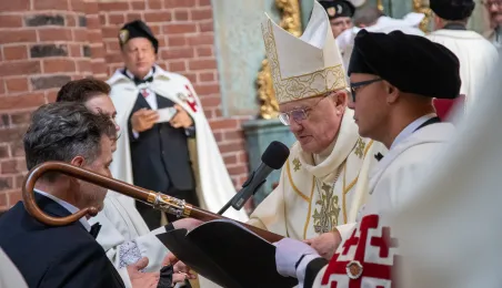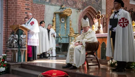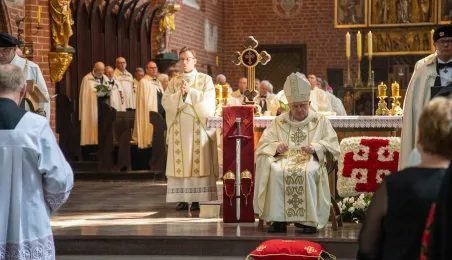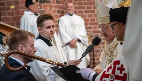 Podczas mszy św. pod przewodnictwem kardynała Kazimierza Nycza w Katedrze Św. Janów w Toruniu odbył się obrzęd inwestytury nowych dam i kawalerów Zakonu Rycerskiego Św. Grobu w Jerozolimie. Fot. Agnieszka Bielecka