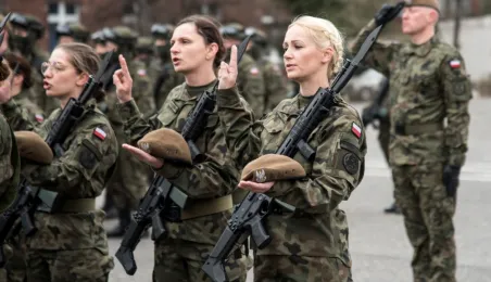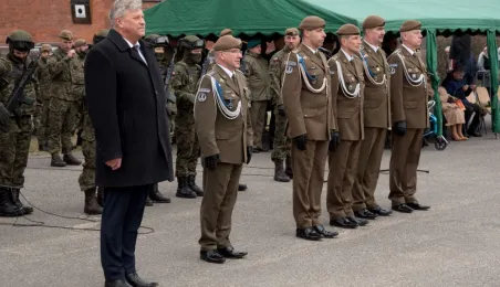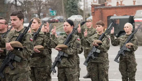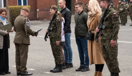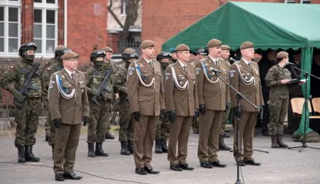 46 żołnierzy 8. Kujawsko-Pomorskiej Brygady Obrony Terytorialnej złożyło 26 marca 2022 r. przysięgę w toruńskim Centrum Szkolenia WOT.