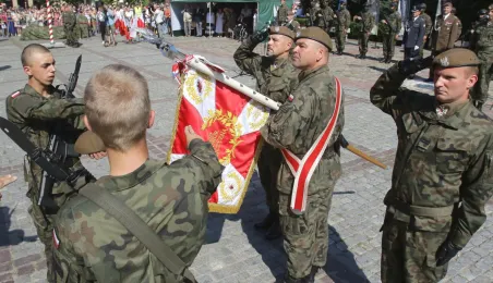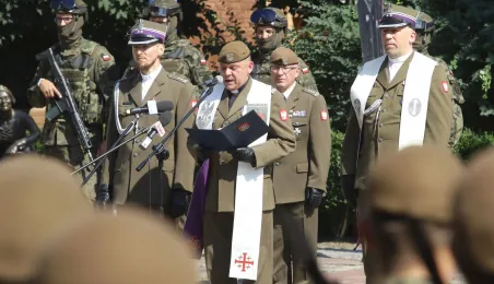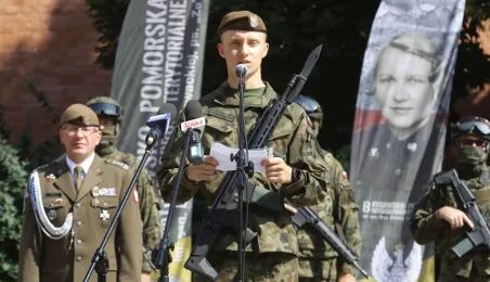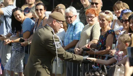 Blisko 150 żołnierzy Wojsk Obrony Terytorialnej złożyło przysięgę w dniu 27 sierpnia 2022 r. na toruńskim Rynku Nowomiejskim. Również w tym dniu obchodzone jest Święto 8. Kujawsko-Pomorskiej Brygady Obrony Terytorialnej im. gen. bryg. Elżbiety Zawackiej, pseud. „Zo”.Z tej okazji odbyła się defilada, a także piknik wojskowy. Fot. Adam Zakrzewski